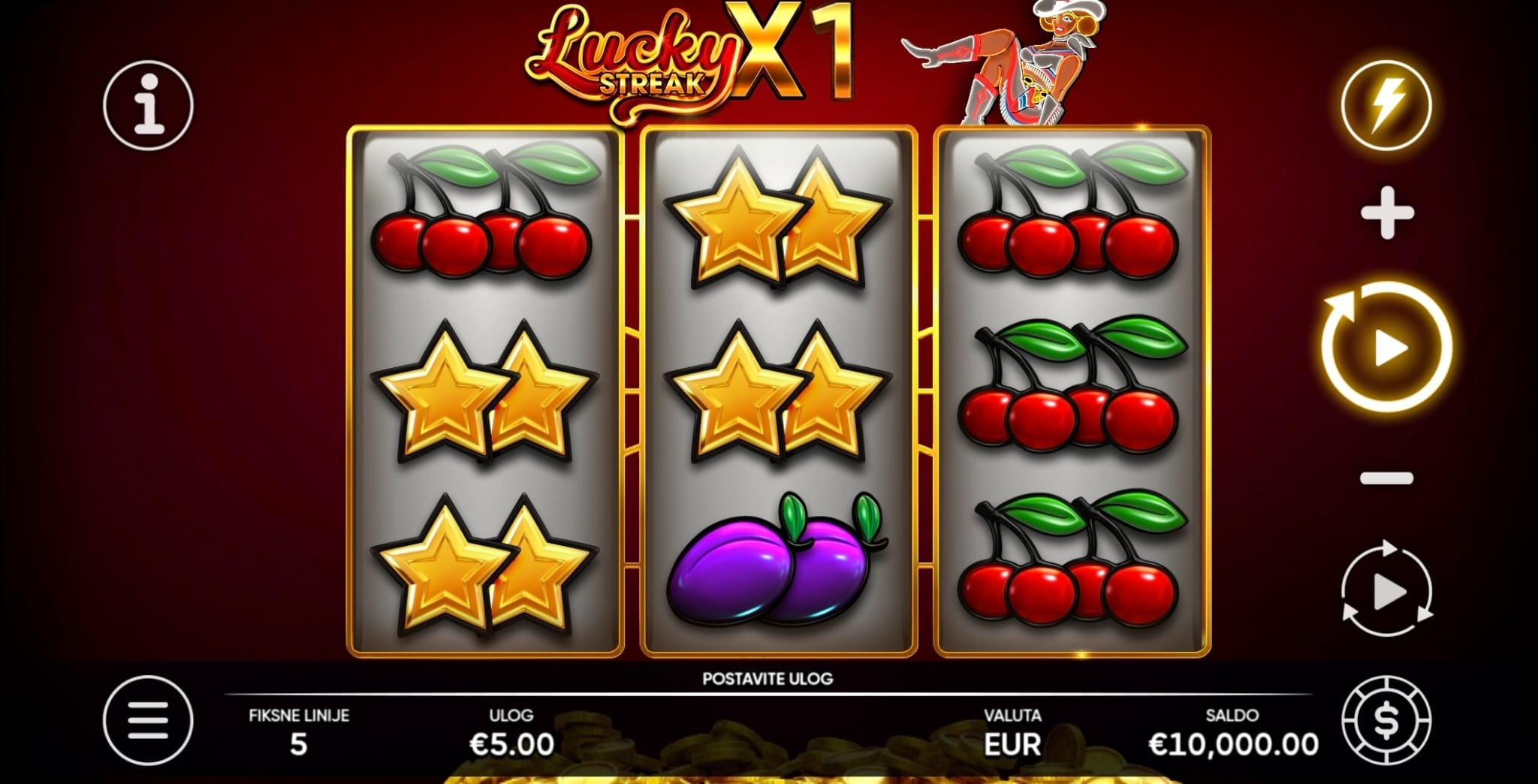Igra Lucky Streak X ima RTP od 96.07%, kao što je navedeno u informacijama o igri. Zbog mehanike proširujućih Wild simbola s množiteljima, volatilnost ove igre je srednja do visoka.