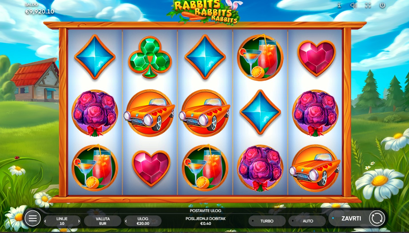 Zakorači u šareni i zabavni svijet s Rabbits, slot igrom providera Endorphina koja te vodi u veselu avanturu prepunu nagrada! Wild simboli pomažu ti u stvaranju dobitnih kombinacija, dok posebna bonus igra Zekino vjenčanje pretvara role iz glavne igre u mrežu formata 5x3, u kojoj možeš osvojiti do 100x uloga. Dodatnu napetost pruža igra rizika, gdje možeš pokušati udvostručiti osvojeni dobitak. Svaka vrtnja donosi nove prilike za uzbudljive nagrade i veselu avanturu među zečevima.