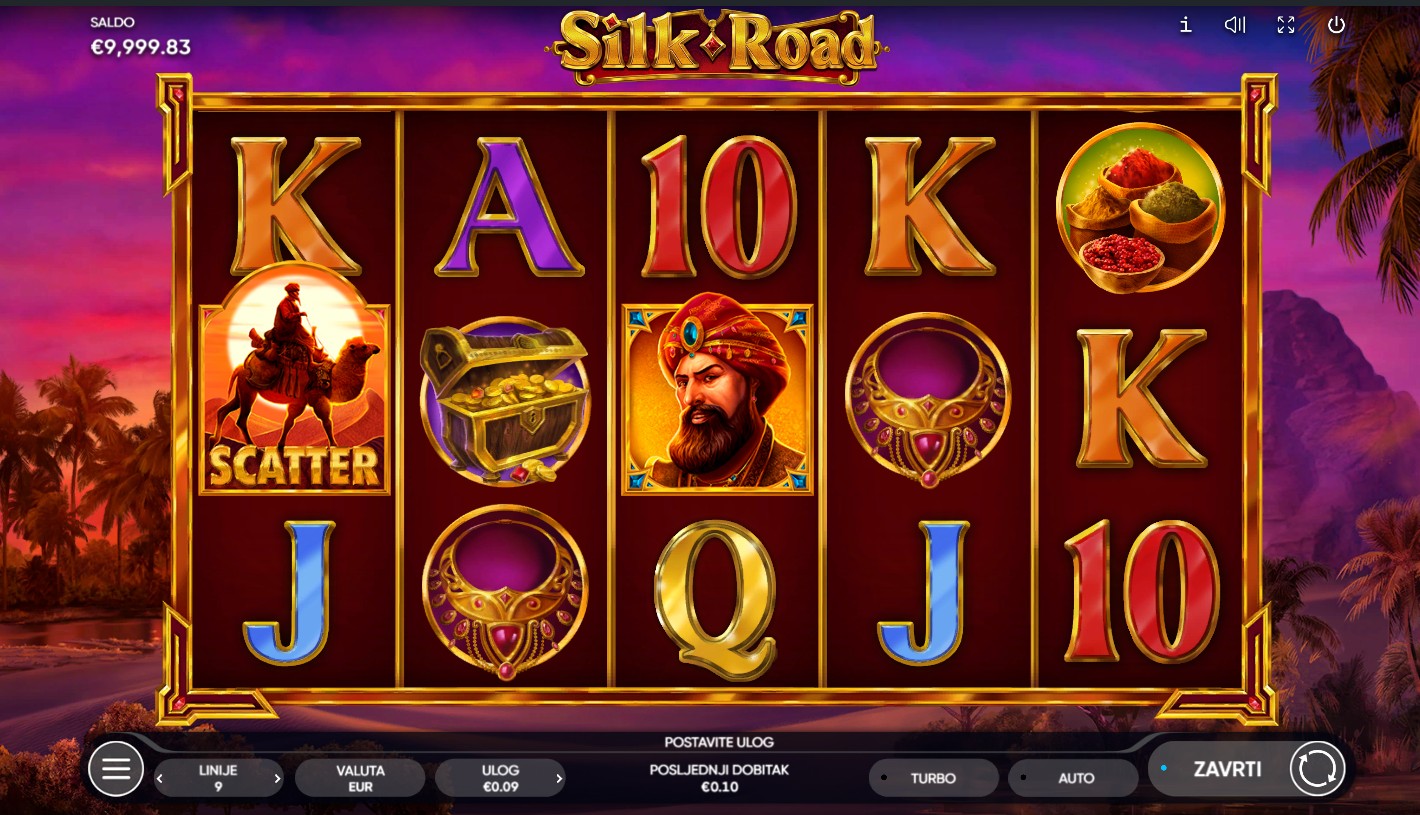 Zakorači na legendarni Put svile sa slot igrom Silk Road providera Endorphina, gdje svaki spin donosi priliku za uzbudljivu avanturu i nagrade! Wild i Scatter simboli pomažu u stvaranju dobitnih kombinacija, a hodajući Wild simboli mogu aktivirati rundu 10 besplatnih igara, povećavajući šanse za dodatne dobitke. Dodatnu napetost unosi igra rizika, u kojoj možeš pokušati udvostručiti osvojeni iznos. Svaka vrtnja vodi te kroz egzotične krajolike i trgovinske karavane, pružajući istinsku avanturu na legendarnom Putu svile.