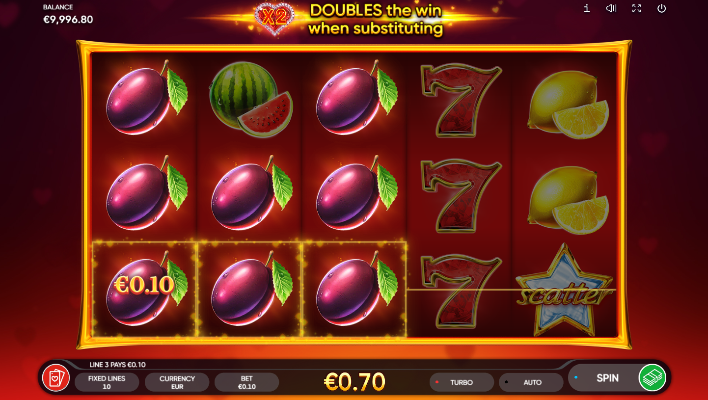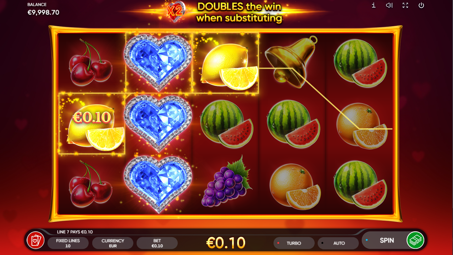 Pokreni valjke i pazi na pojavu srcolikih simbola koji nose najveću moć. Wild simboli zamjenjuju druge i šire se, dok crveno srce s multiplikatorom može udvostručiti tvoje nagrade. Igra nudi i gamble opciju u kojoj možeš riskirati i do deset puta zaredom za udvostručavanje dobitaka. Kombinacija jednostavne mehanike i napetih značajki čini igru privlačnom za sve tipove igrača. Svaki spin je prilika za veliki iskorak, i ljubavni i dobitni.