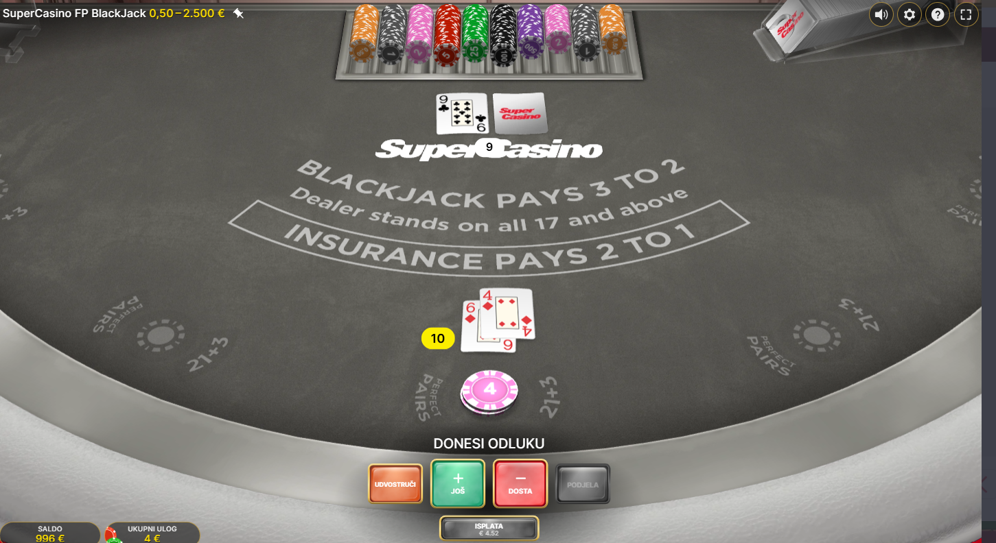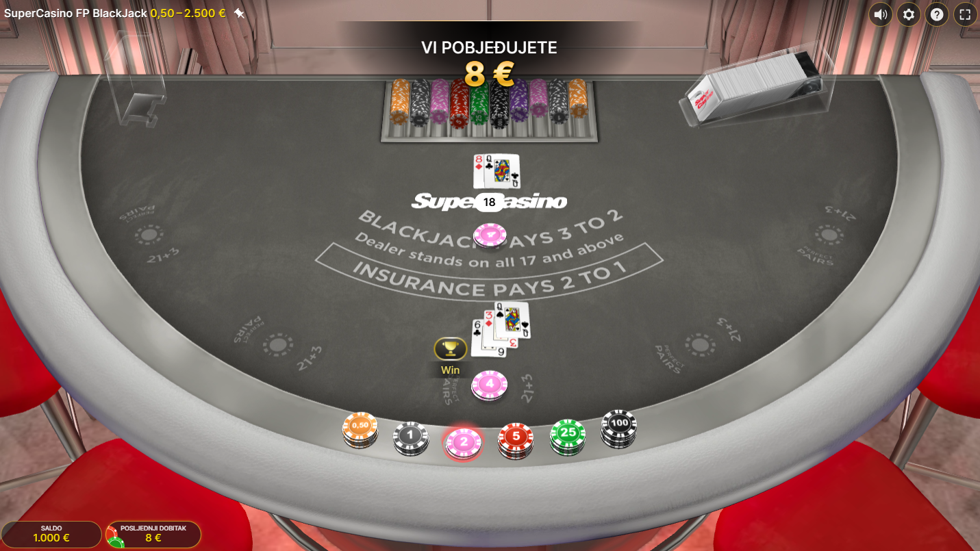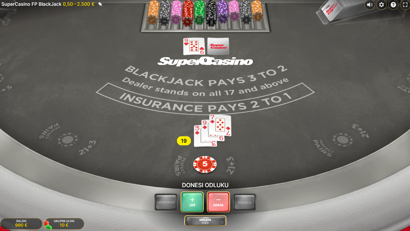Zaronite u svijet virtualne zabave uz First Person Blackjack! Ova online verzija uzbudljivog Blackjacka, providera Evolution, donosi pravu napetu atmosferu pravog kasina. Igra se do pet ruku, koriste se svi klasični potezi, ali ponajprije velika zabava. Za dodatnu dozu adrenalina tu su i bočna riskiranja. To je savršena prilika za još veće uzbuđenje.