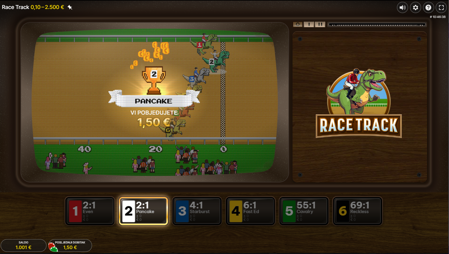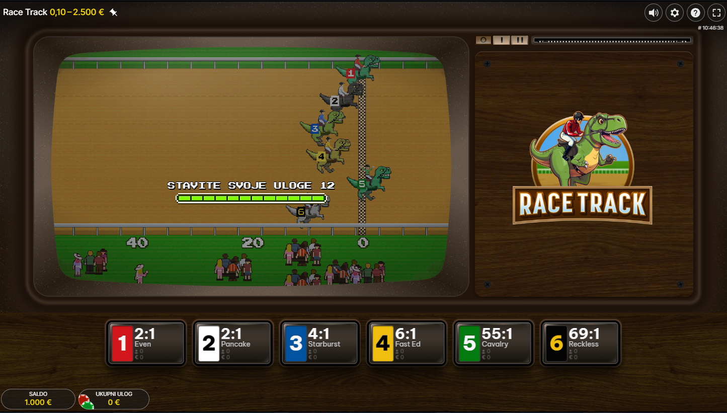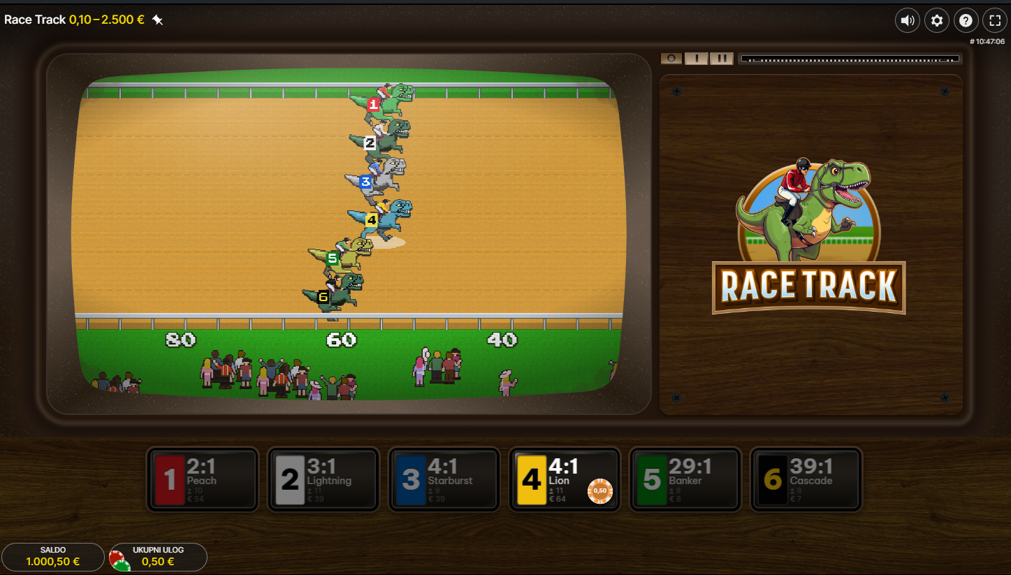 4. Koji su minimalni i maksimalni ulozi u igri Race Track?
