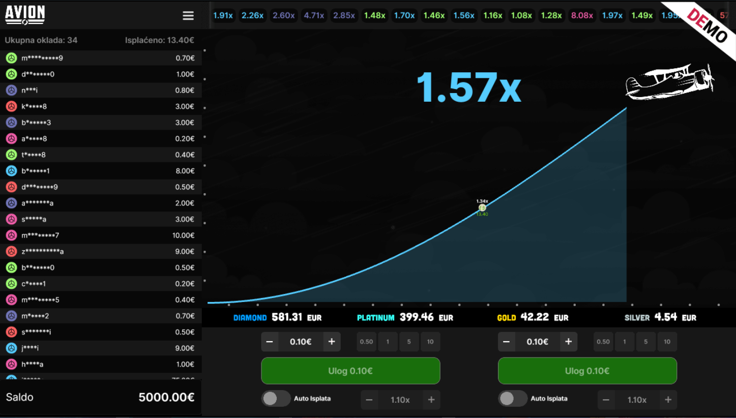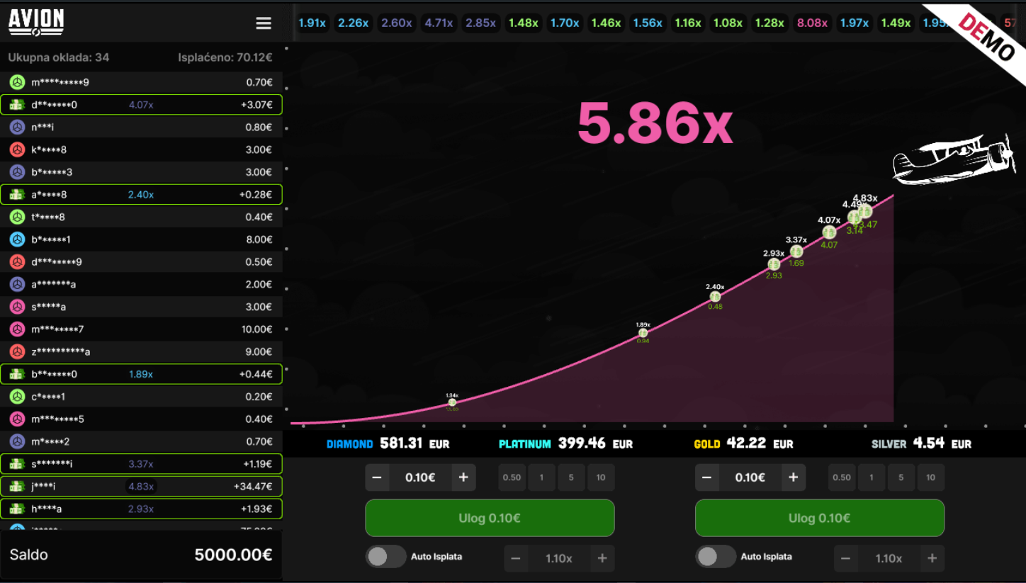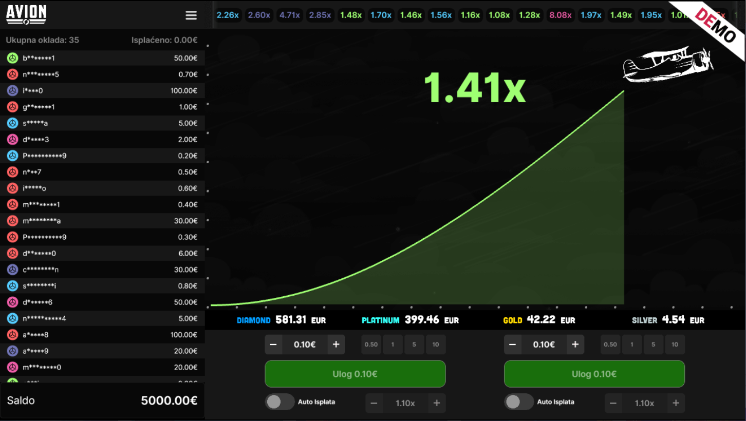 4. Koji su minimalni i maksimalni ulozi u igri Avion?