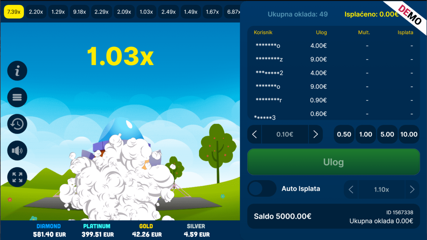 Postavi ulog i pokreni lansiranje. Gledaj kako multiplikator rakete raste u stvarnom vremenu, ali pazi, ako eksplodira prije nego što unovčiš, sve gubiš! Ključ igre je osjećaj za pravi trenutak: iskoči prerano i propustiš priliku, čekaj predugo i izgaraš u atmosferi. Blazing Rocket je savršena kombinacija rizika, refleksa i intuicije.