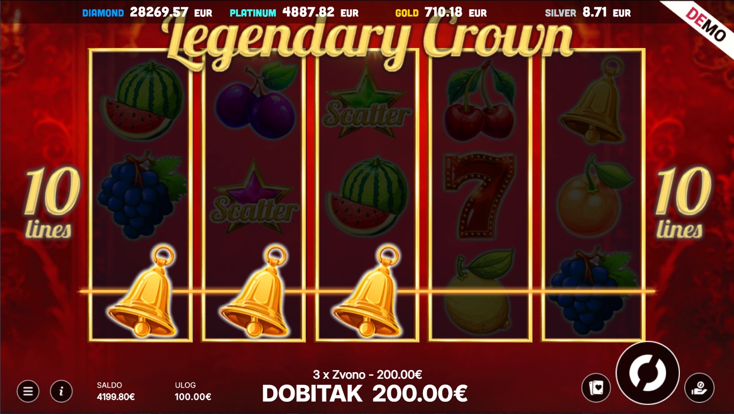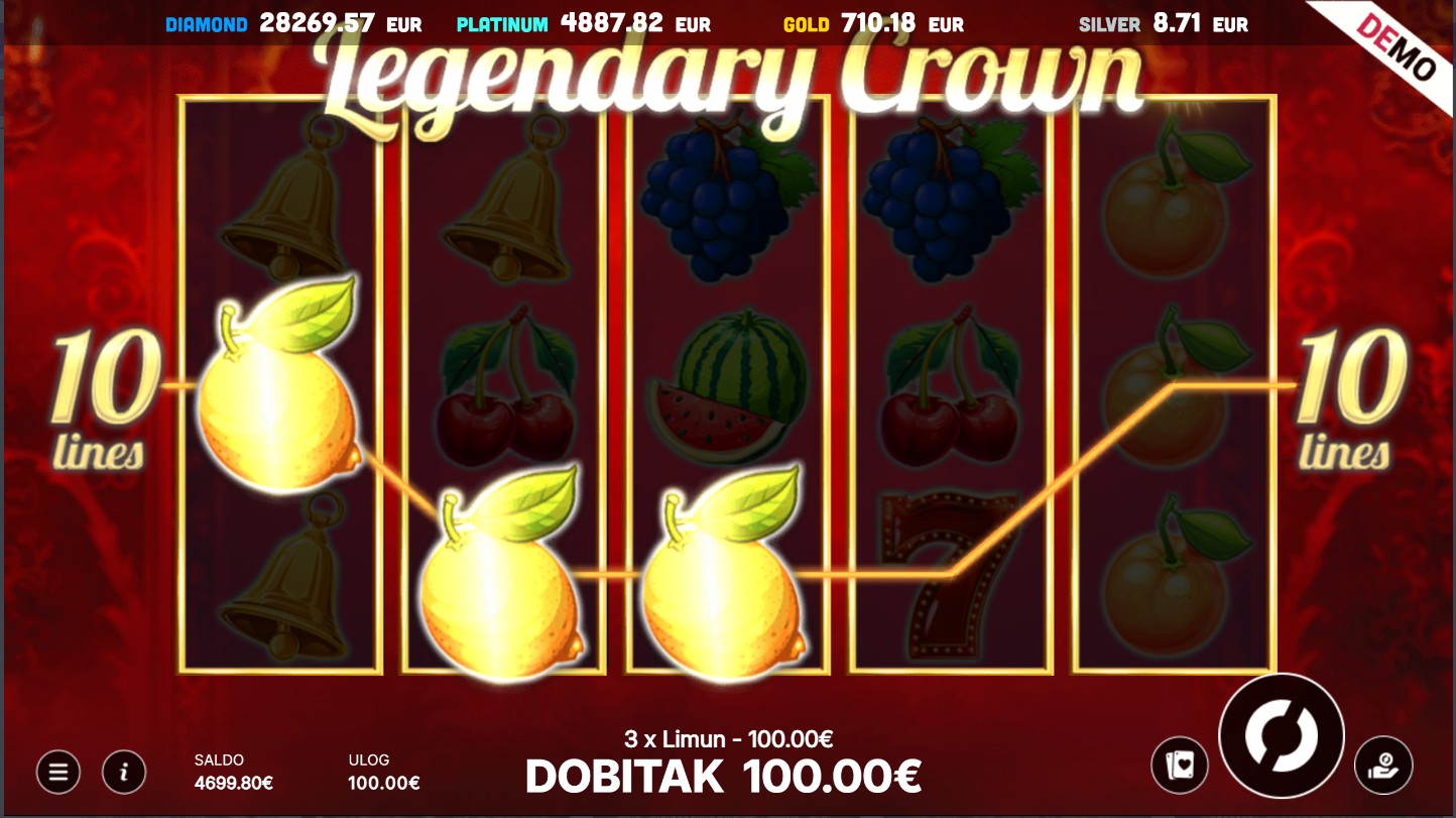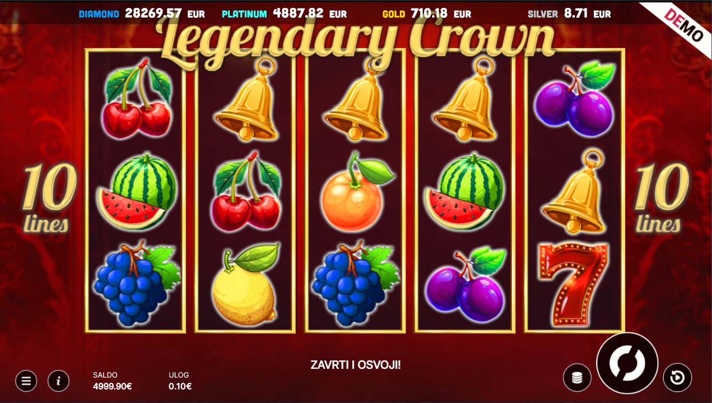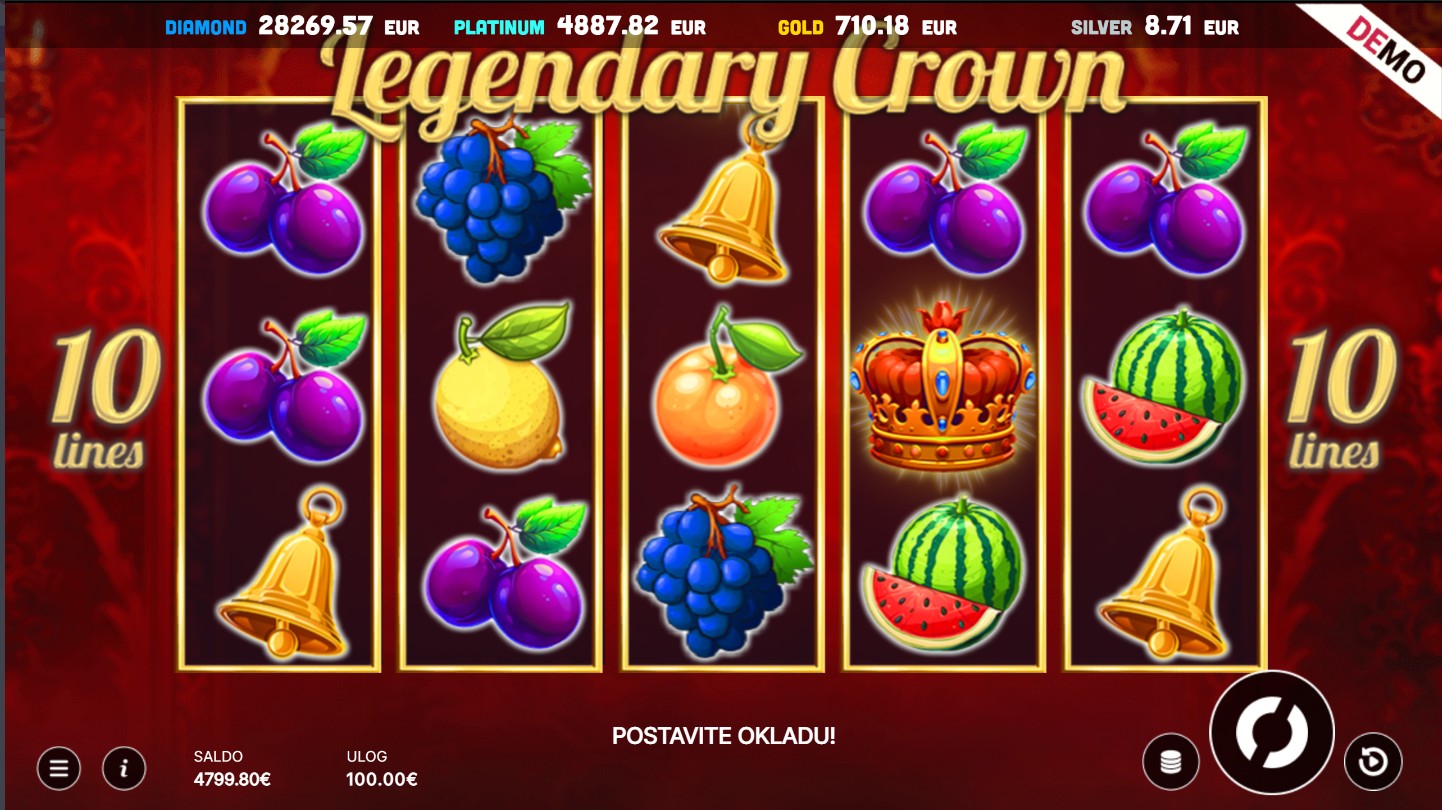 Legendary Crown se igra na 5 valjaka i 3 reda s 10 fiksnih isplatnih linija. Cilj igre je složiti iste simbole slijeva nadesno kako bi ostvario dobitne kombinacije i osjetio uzbuđenje svakog spina. Wild simboli zamjenjuju sve ostale simbole osim scattera i pomažu ti u stvaranju novih dobitaka, dok scatter simbol bilo gdje na ekranu pokreće bonus rundu koja donosi dodatne nagrade. Opcija igre rizika omogućuje ti da pokušaš udvostručiti svoj dobitak odabirom boje karte, dodajući još više napetosti i adrenalina. Svaka vrtnja pruža novu priliku za zabavu i kraljevske dobitke, a svaki spin donosi osjećaj prave avanture u svijetu blještavih simbola i uzbudljivih nagrada.