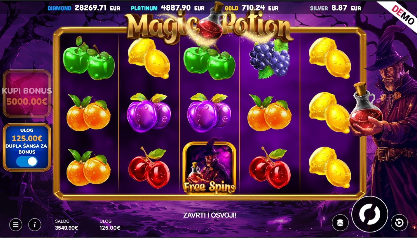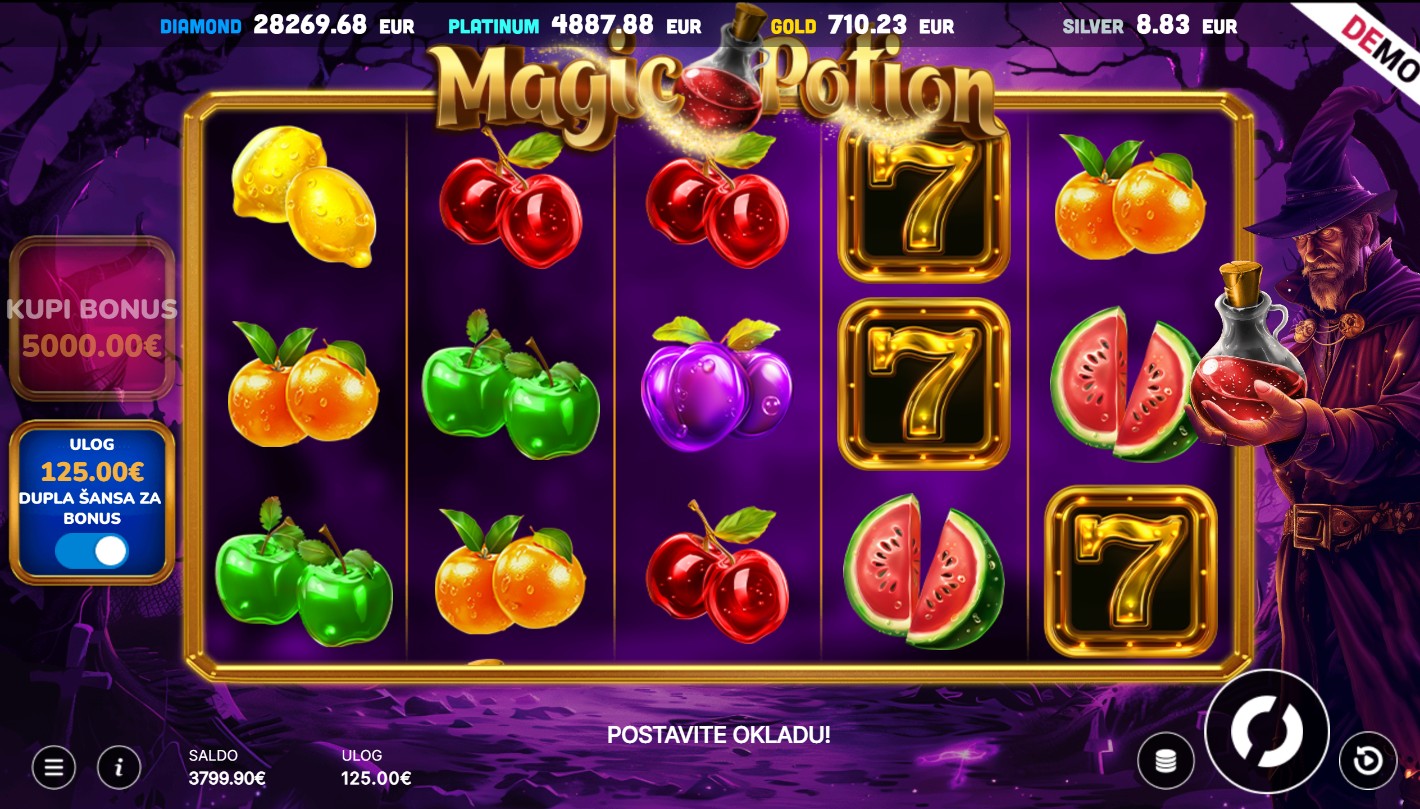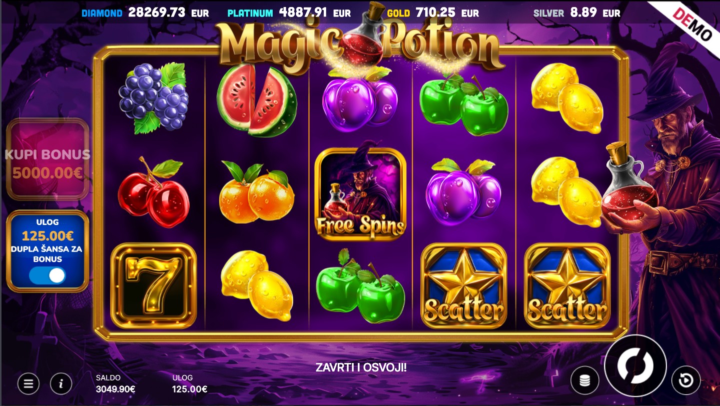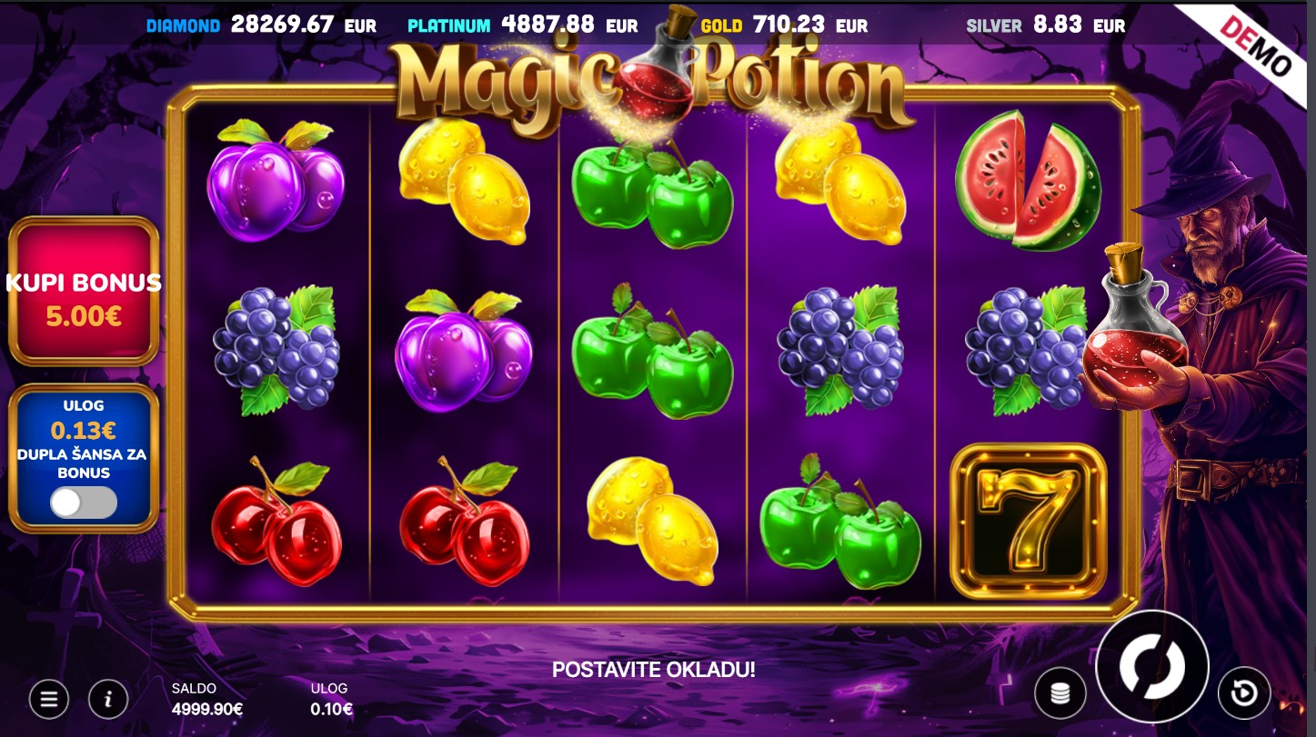 Magic Potion ima RTP od oko 95%, što znači da pruža vrlo solidne šanse za dobitak tijekom igre. Volatilnost je srednja što povećava uzbuđenje jer igra može donijeti značajne dobitke, osobito tijekom bonus značajki. Idealna je za igrače koji vole dinamičnu s potencijalom za veće nagrade.