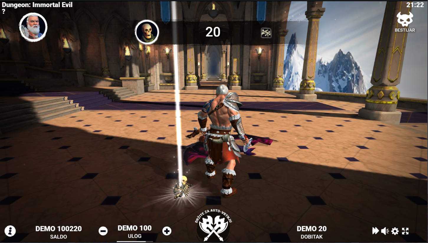 Dungeon Immortal Evil je inovativni slot od Evoplay-a koji spaja RPG i kasino mehaniku. Umjesto klasičnih koluta, igrač prati junaka kroz mračne tamnice pune čudovišta. Svaka borba donosi priliku za osvajanje nagrada, dok upečatljivi 3D vizuali i zvučni efekti stvaraju atmosferu prave videoigre. To je jedinstvena kombinacija akcije i slot zabave.