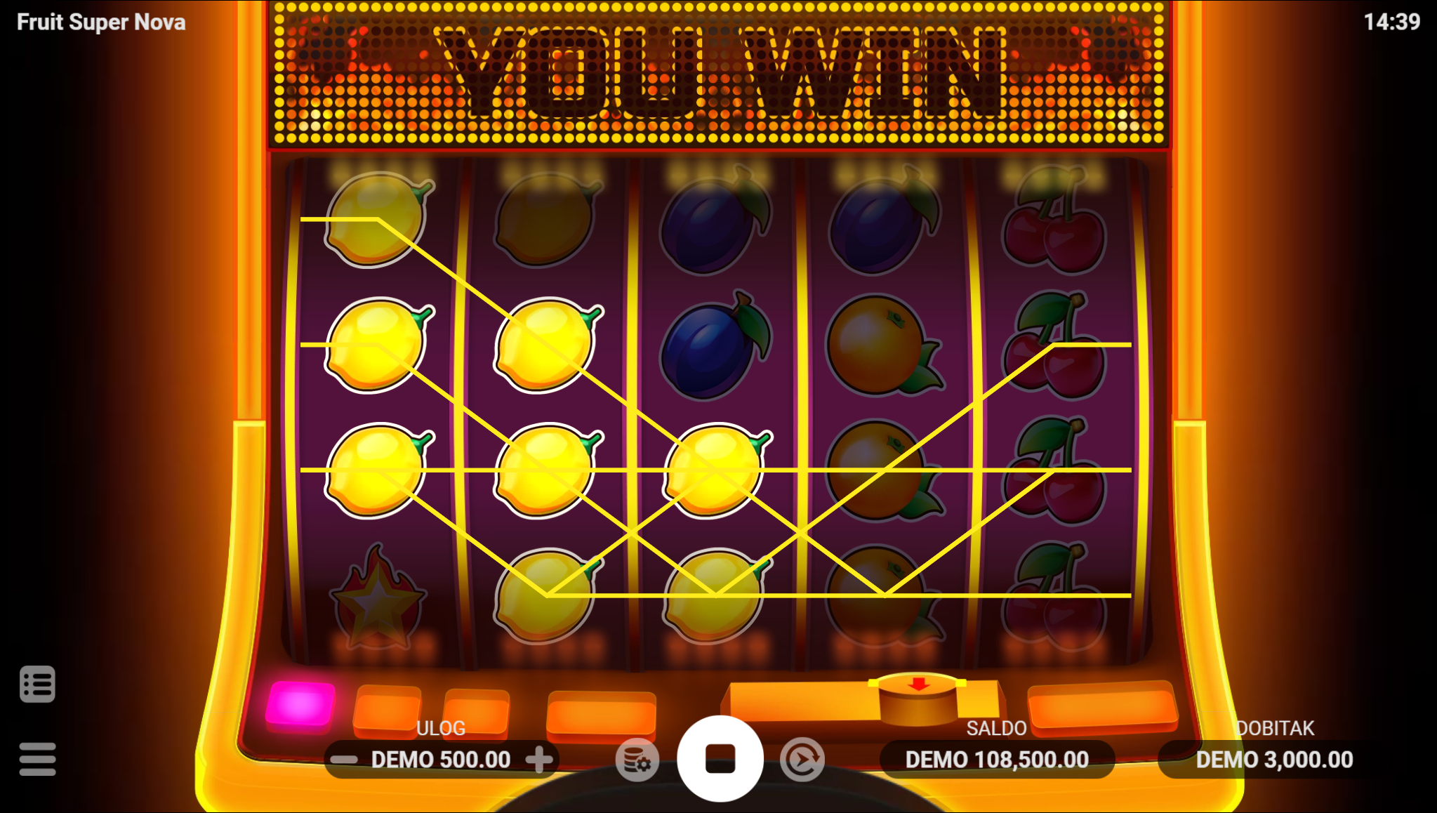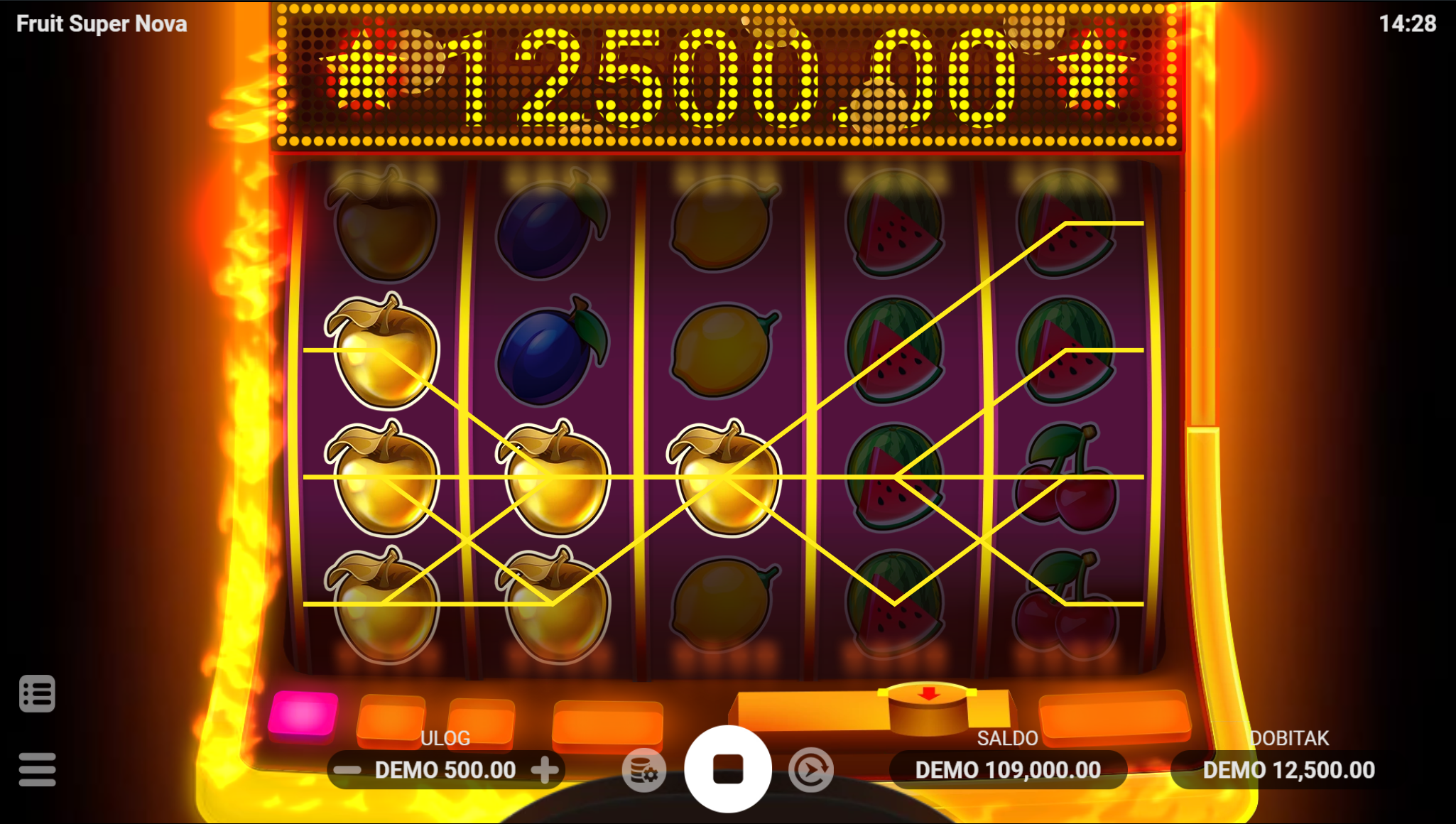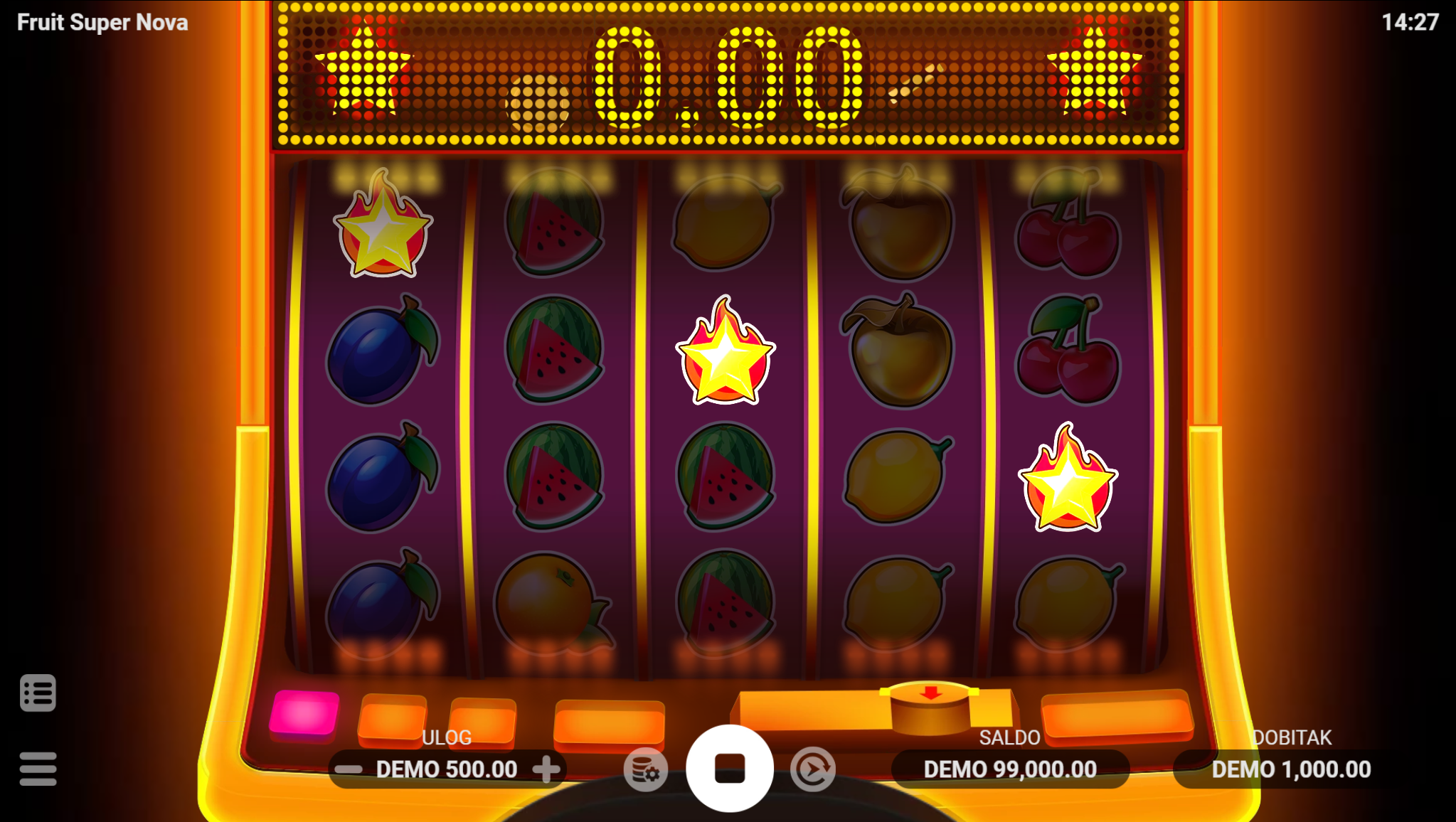 Ljubitelj si klasičnih i jednostavnih voćih slotova? Na pravom si mjestu jer Fruit Super Nova pruža sve to, a i mnogo više. Primamljivo ilustrirano voće jednostavnog dizajna, kao i način igranja učiniti će dozu zabave i zanimacije nedostižnom! Kako uzbuđenju tu nebi bio kraj, pobrinuti će se simbol zlatne jabuke i igranje pretvoriti u super uzbudljivo te bogato po pitanju dobitaka! Kao jedan od najpopularnijih slotova, Fruit Super Nova odličan je izbor za sve igrače koji vole izvrstan omjer rizika i dobitaka.