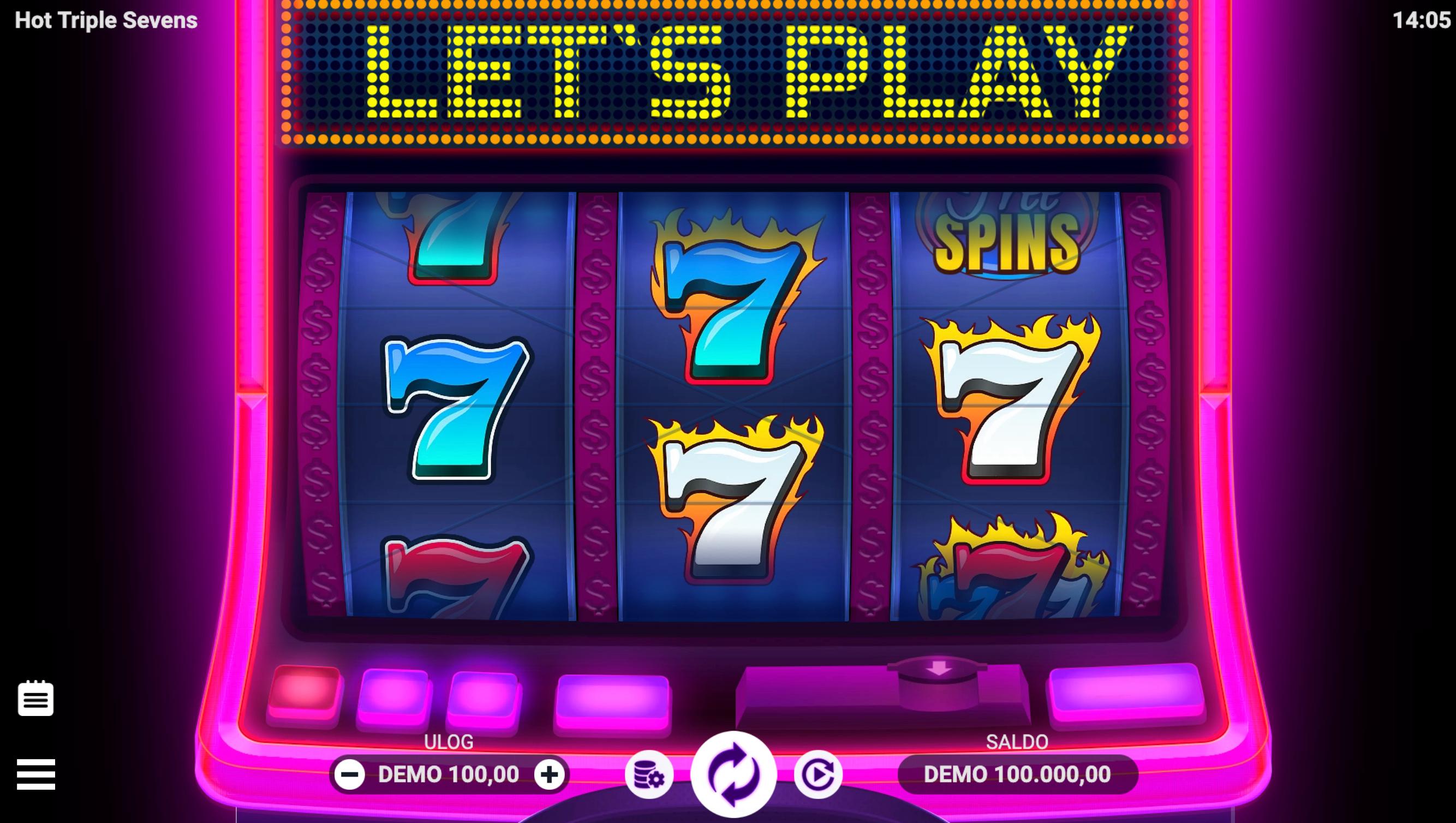 Hot Triple Sevens je video slot koji je razvio Evoplay. Smješten u atmosferu klasičnih Las Vegas automata, igra se odvija na 3 koluta i 3 reda s 5 isplatnih linija. Tema igre uključuje simbole poput plamenih sedmica u crvenoj, plavoj i bijeloj boji, te standardne sedmice u istim bojama. Pozadina igre prikazuje svjetlucave svjetla i neonske boje, stvarajući uzbudljivu atmosferu.