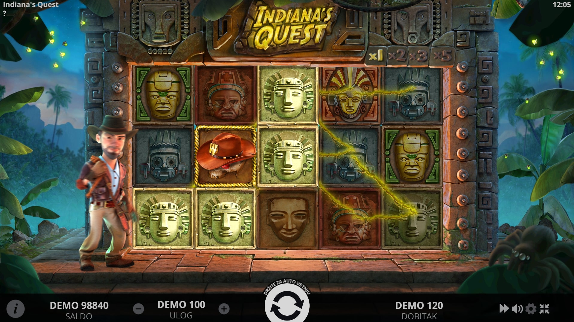 Indiana's Quest slot je igra avanturističkog karaktera koja vodi igrača u lov na blaga drevnih južnoameričkih civilizacija. Simboli su inspirirani kulturama izgubljenih naroda, dok zlatni simbol pojavom na više mjesta u igri može odvesti igrača u svijet besplatnih vrtnji. Uz to, simbol šešira Indiane Jonesa može zamijeniti druge simbole u potrazi za dobicima. Igra uz to sadrži značajku padanja, odnosno nakon isplate dobitni simboli eksplodiraju, a na njihovo mjesto padaju novi sve dok ne ponestane pobjedničkih kombinacija. Zaigraj Indiana's Quest te osvoji fantastiče nagrade!
