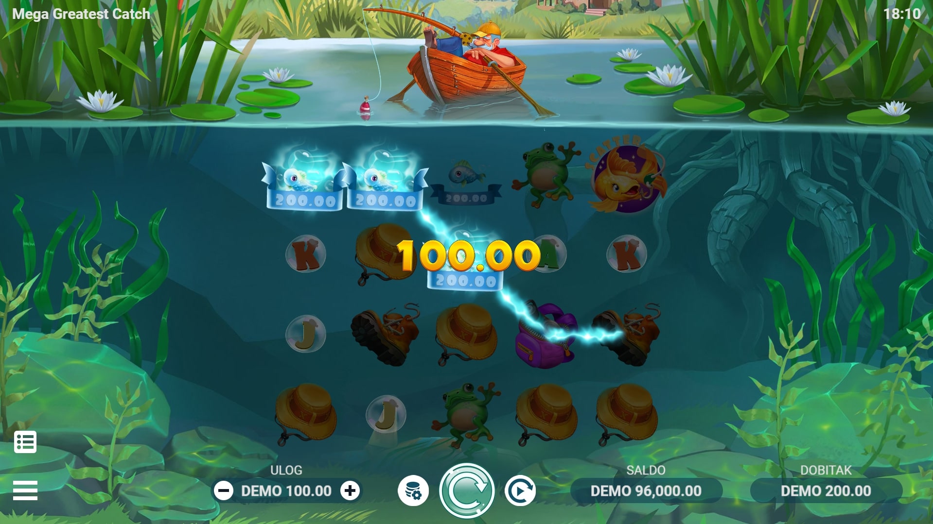 Mega Greatest Catch slot je igra ribičke tematike koja vodi igrača na idilčno jezero u lov na najbolje dobitke. Najviše isplaćuju simboli ribarske čizme, šešira, žabe i torbe, dok poseban simbol ribiča može mijenjati druge simbole u potrazi za dobicima. Besplatne vrtnje moguće je aktivirati javljanjem simbola zlatne ribe. Zaigraj Mega Greatest Catch te ostvari vrhunske nagrade!