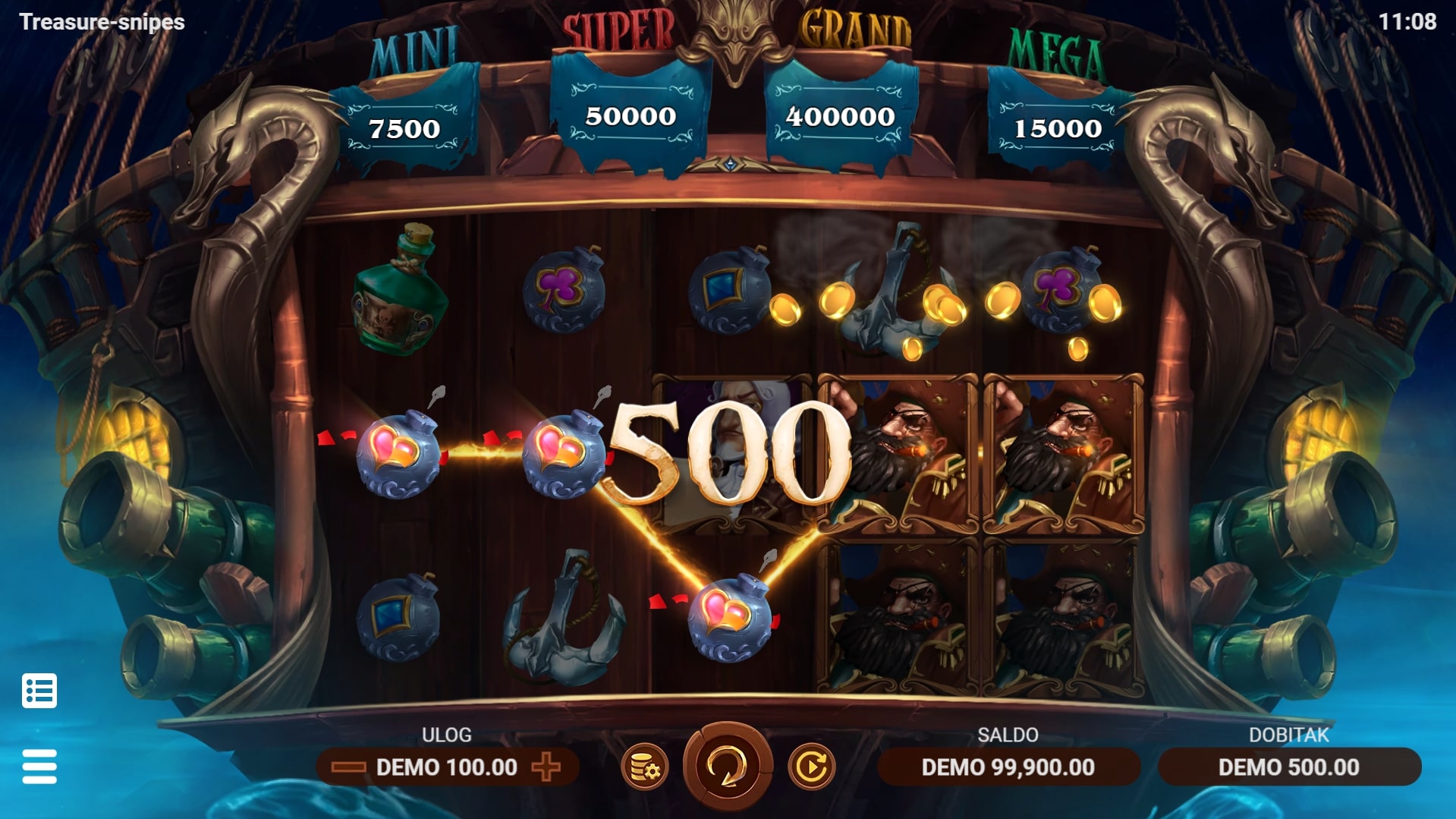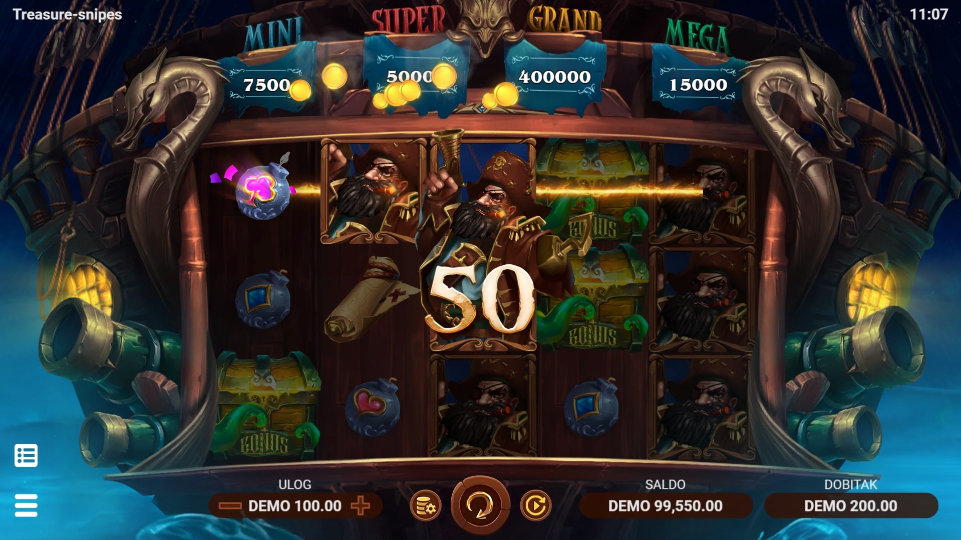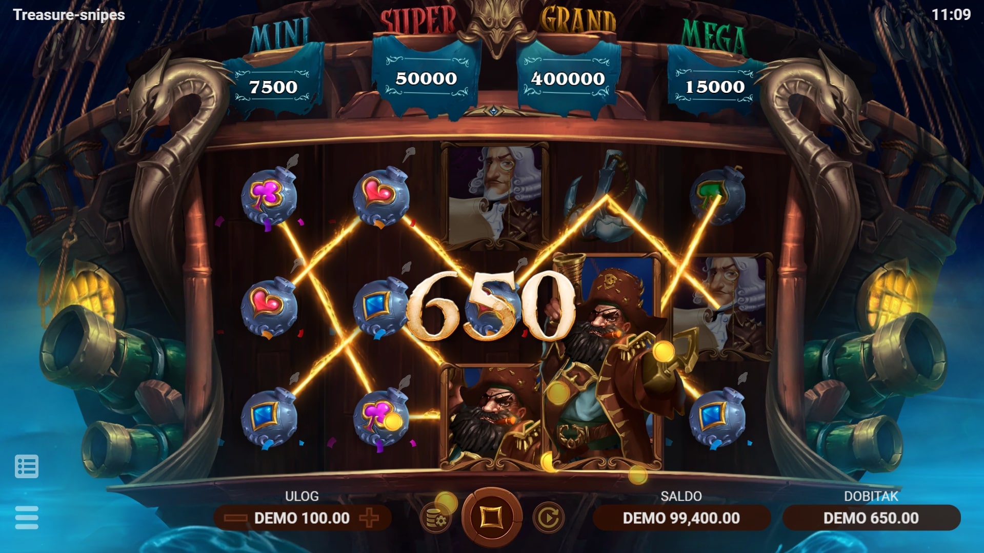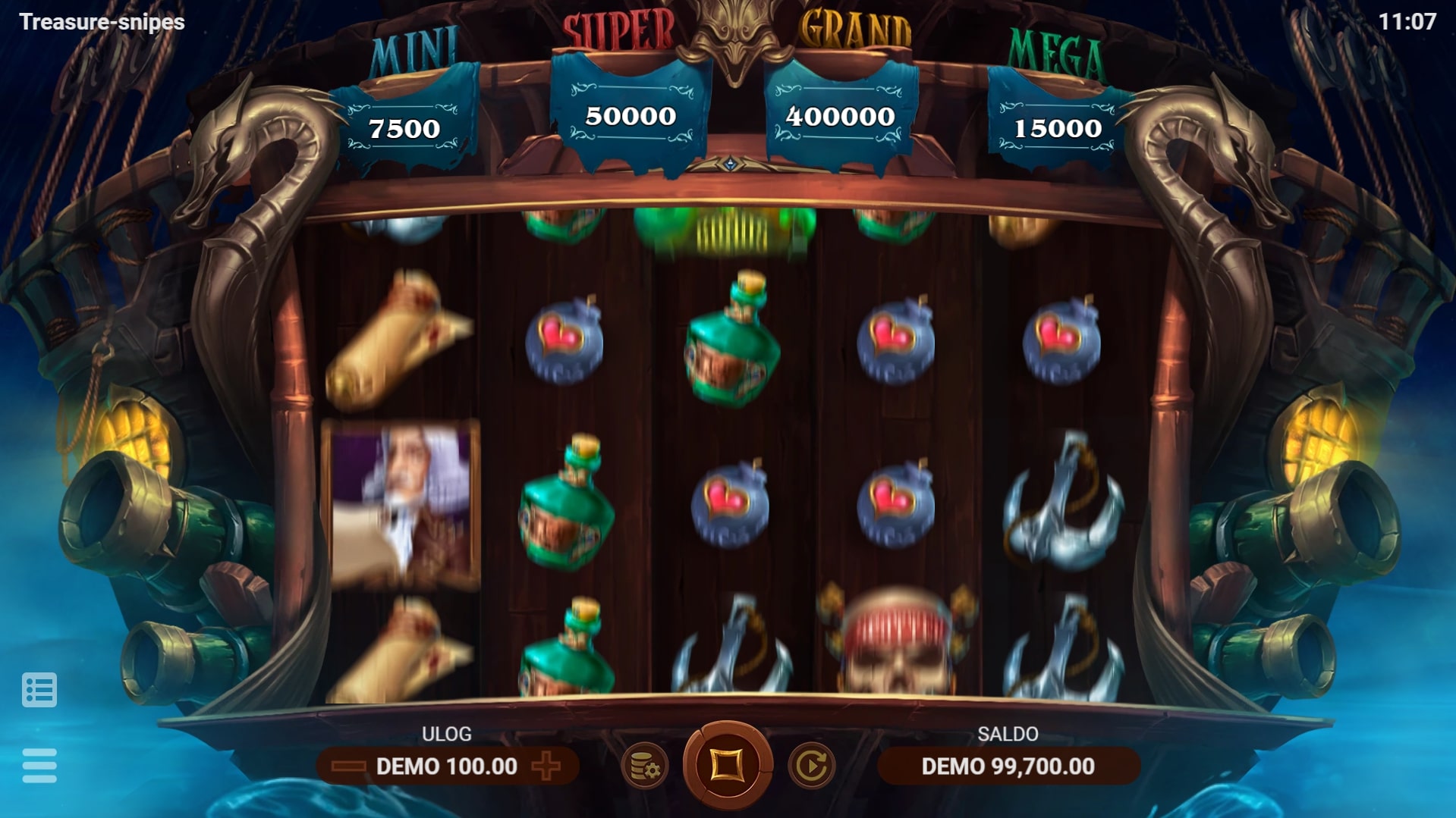 Treasure-Snipes slot je igra istraživačke tematike koja vodi igrača u svijet pirata i danonoćne zabave koju osiguravaju vrhunski dobici. Najviše isplaćuju simboli raznih gusara, mapa, boca i sidra, dok simbol glavnog gusara služi kao zamjena za druge simbole. Igra uz to sadrži poseban simbol lubanje koji igrača može odvesti u svijet besplatnih vrtnji, a pojavom šest tajanstvenih kovčega igrač osvaja Bonus igre. Zaigraj Treasure-Snipes te osvoji vatrene nagrade!