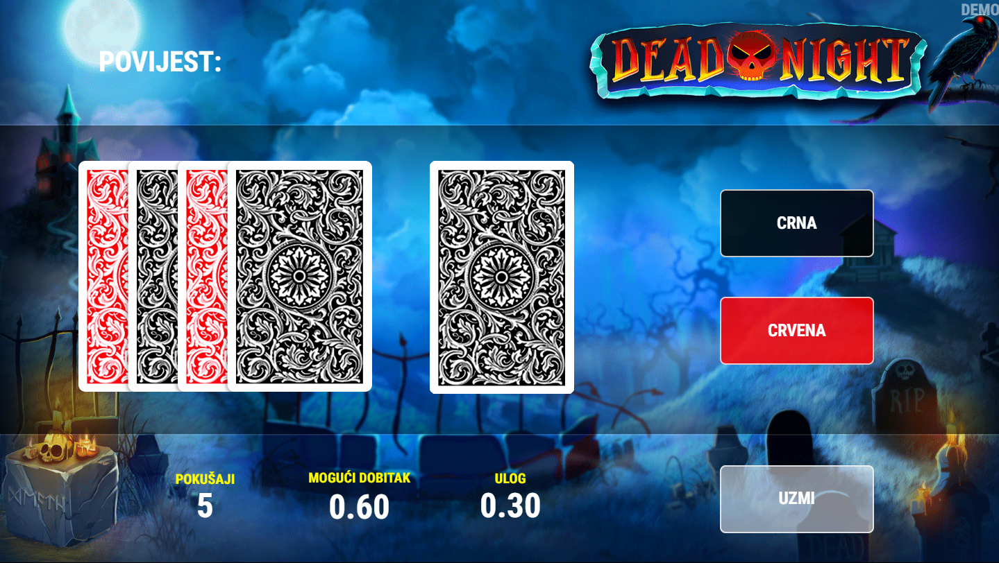 4. Koji su minimalni i maksimalni ulozi u igri Dead Night?