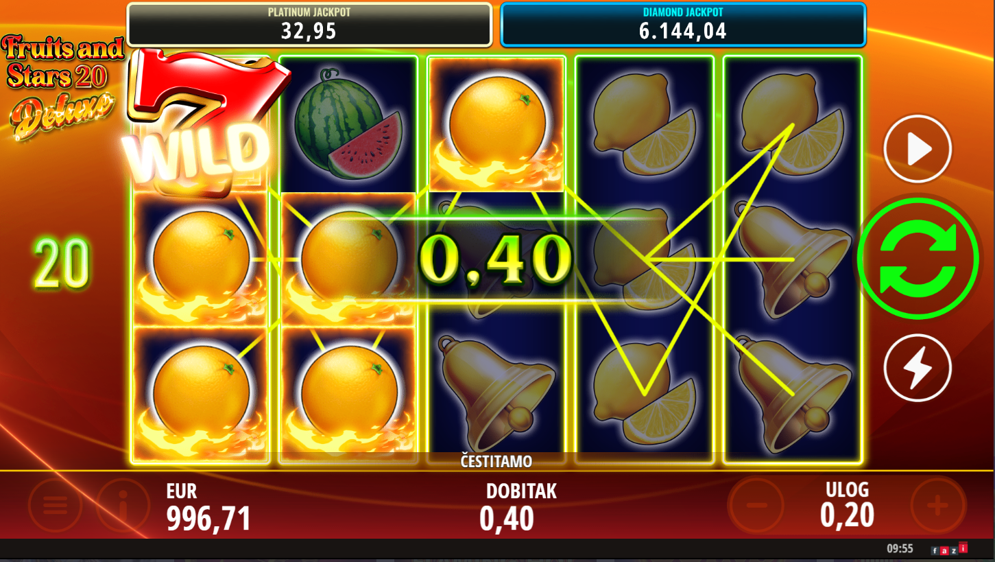 4. Koji su minimalni i maksimalni ulozi u igri Fruits and Stars 20 Deluxe?