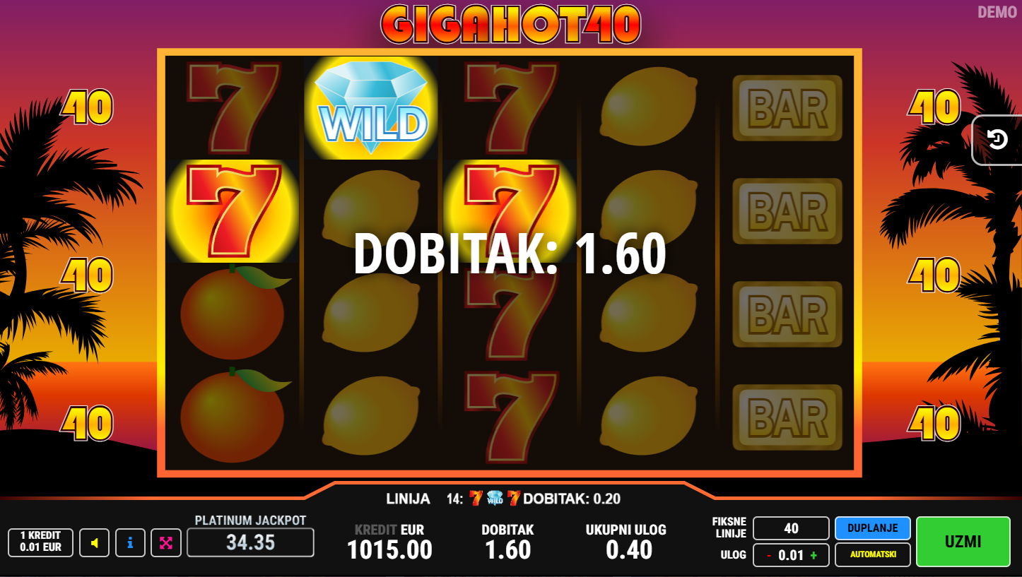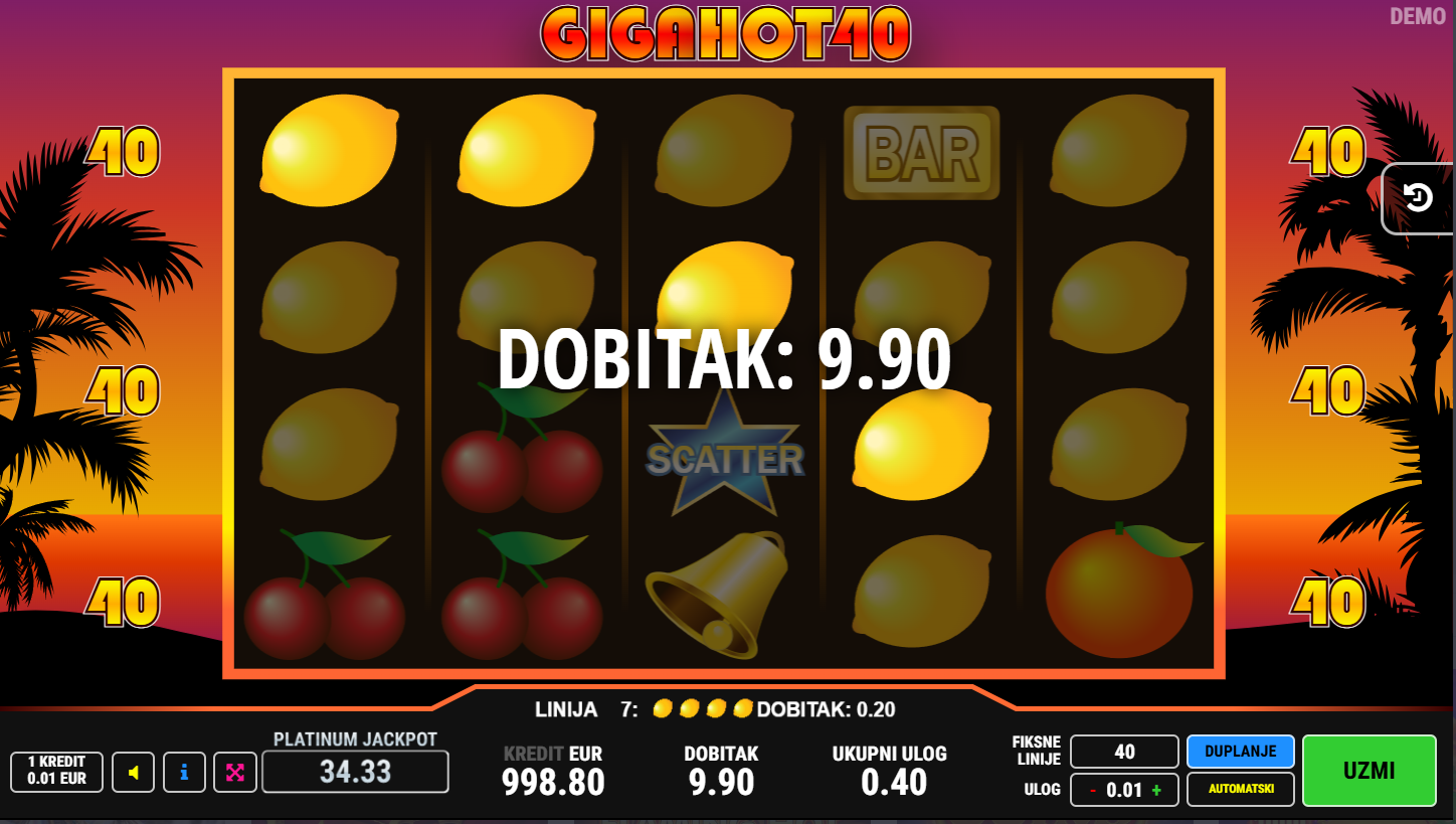 4. Koji su minimalni i maksimalni ulozi u igri Giga Hot 40?