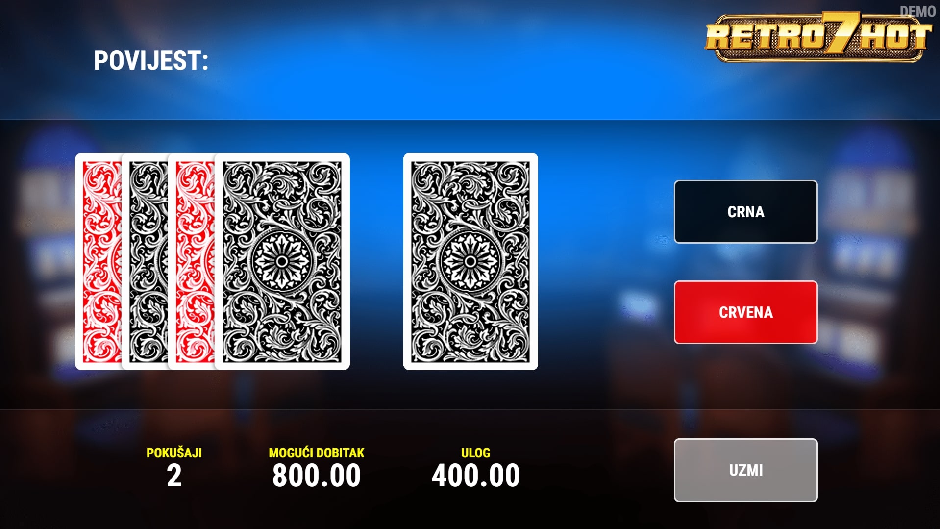Retro 7 Hot slot je igra klasičnog karaktera koja vodi igrača pred tradicionalni automat gdje dominiraju simboli voća. Ipak, najviše vrijede sedmice, a zatim slijede simboli zvona i zvijezde. U slučaju dobitka, igrač ga može pokušati 'poduplati' pogađanjem boje karte okrenute licem prema dolje, riskirajući dobitak osvojenog vrtnjom. Zaigraj Retro 7 Hot te osvoji vatrene nagrade!