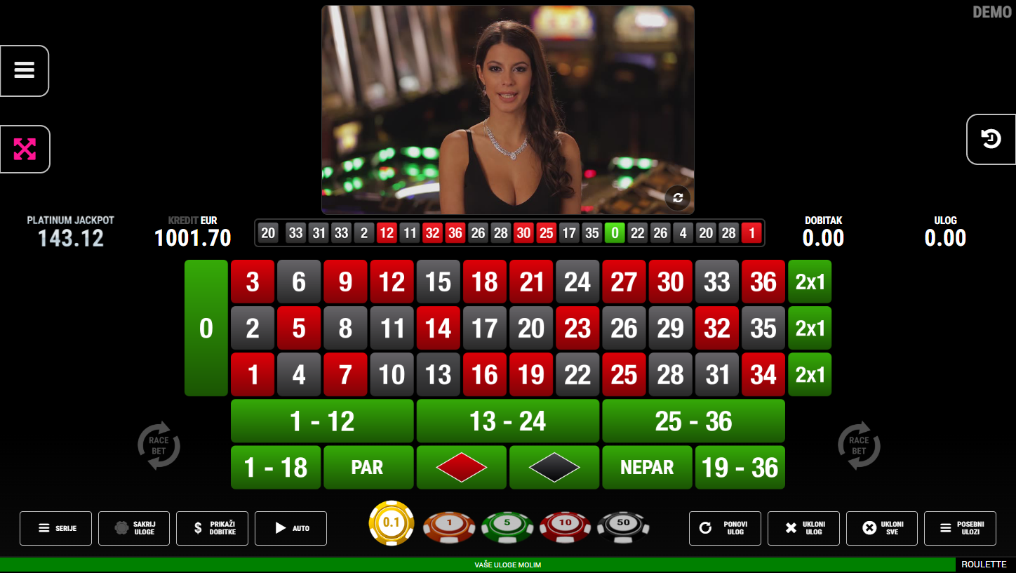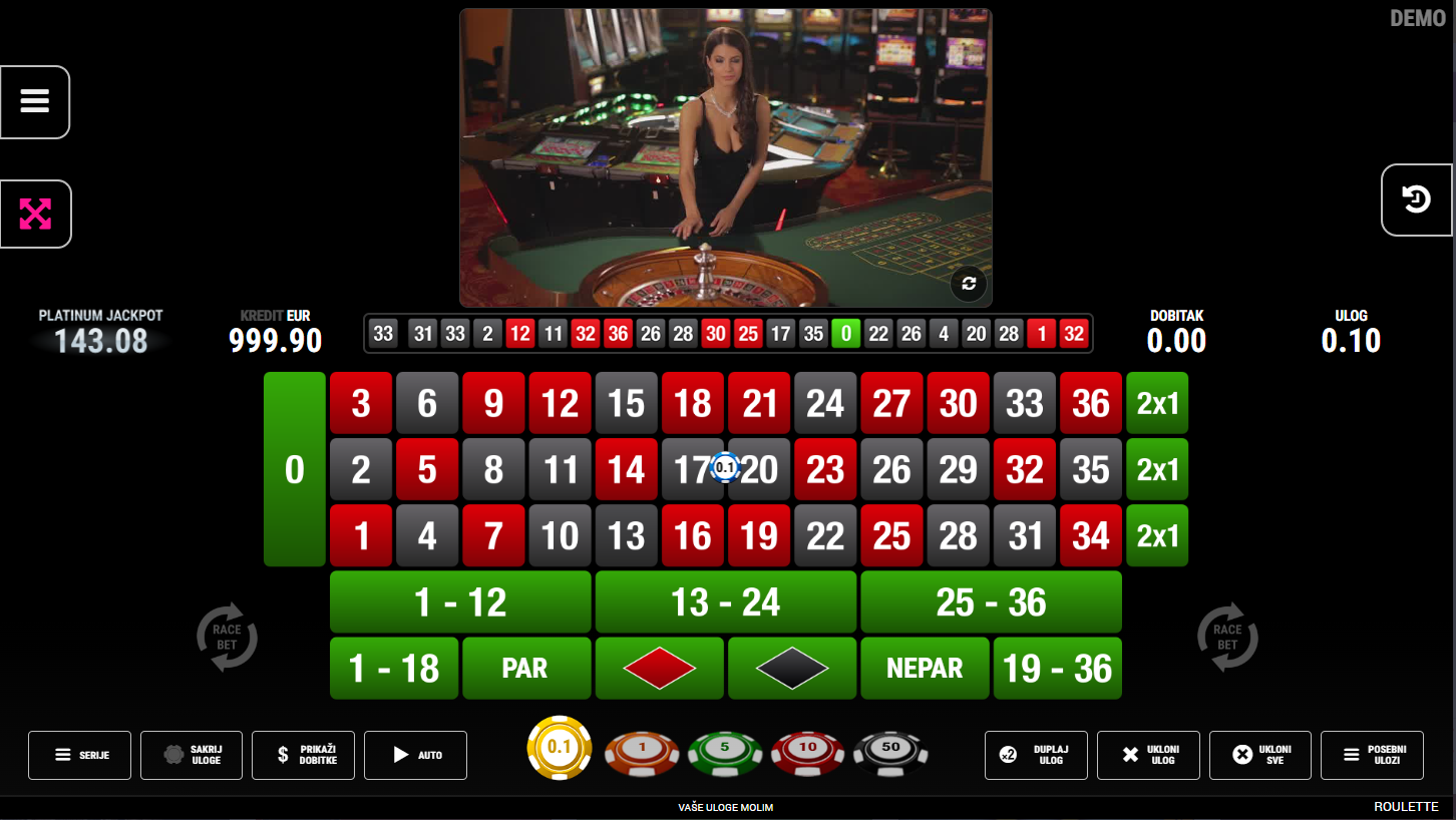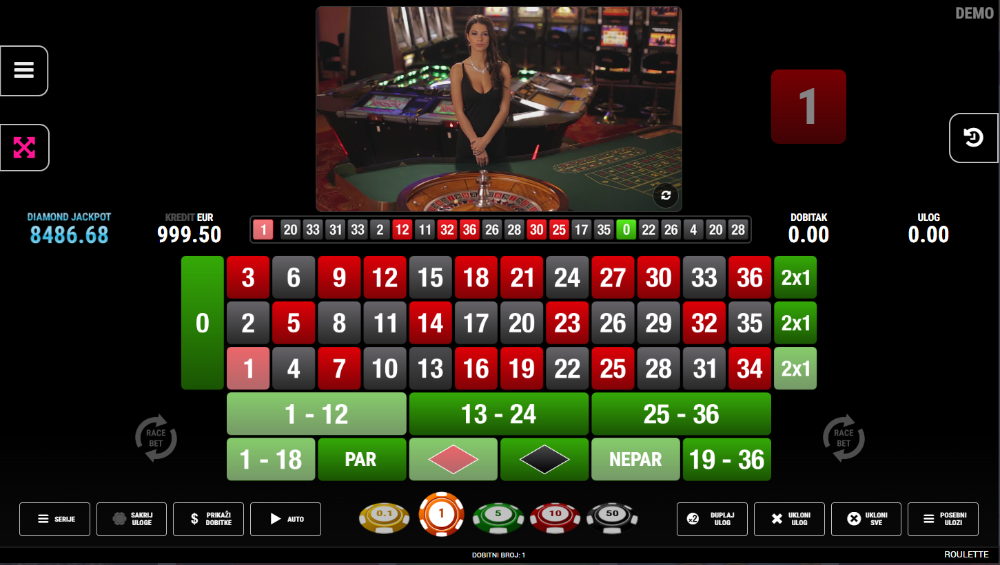 Minimalni ulog je 1€ , a maksimalni ulog iznosi 6000€.