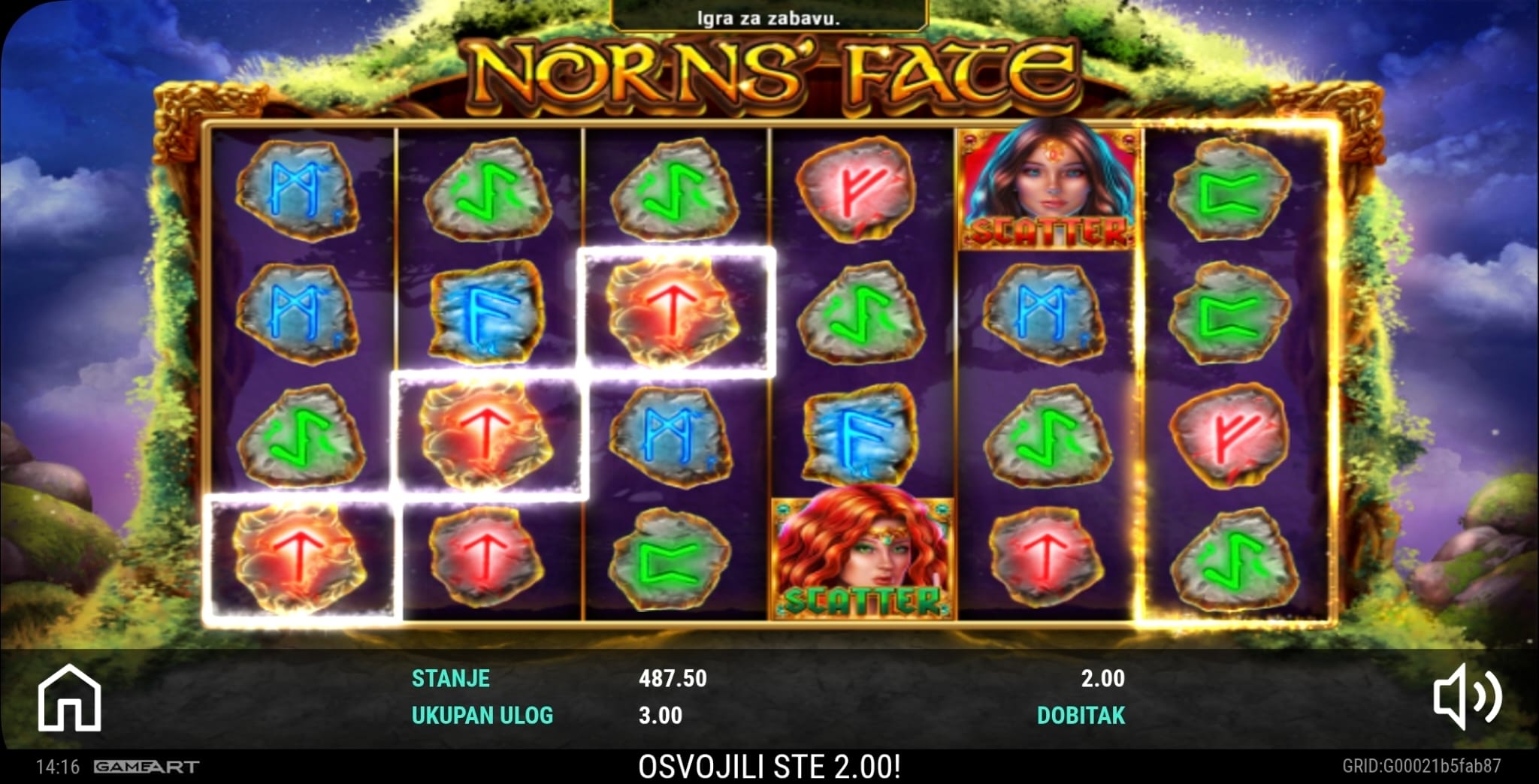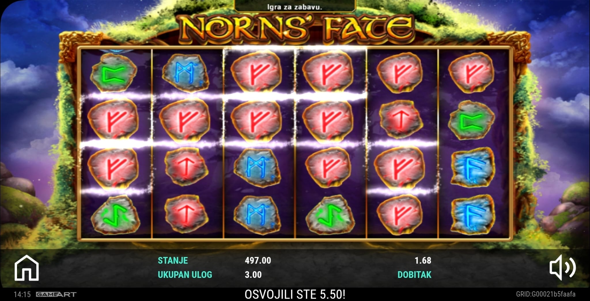 Otkrijte svoju sudbinu uz Norns Fate, mističnu slot igru providera GameArt koja vas uvodi u svijet nordijske mitologije. Pripremite se za susret s bićima koja upravljaju sudbinom i samim Odinom. S mrežom od 5 valjaka i 30 isplatnih linija te srednjom volatilnošću, Norns Fate nudi savršenu ravnotežu između uzbudljive radnje i čestih dobitaka.