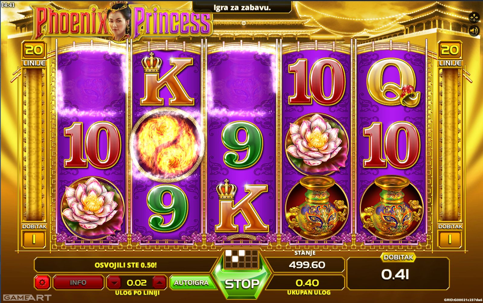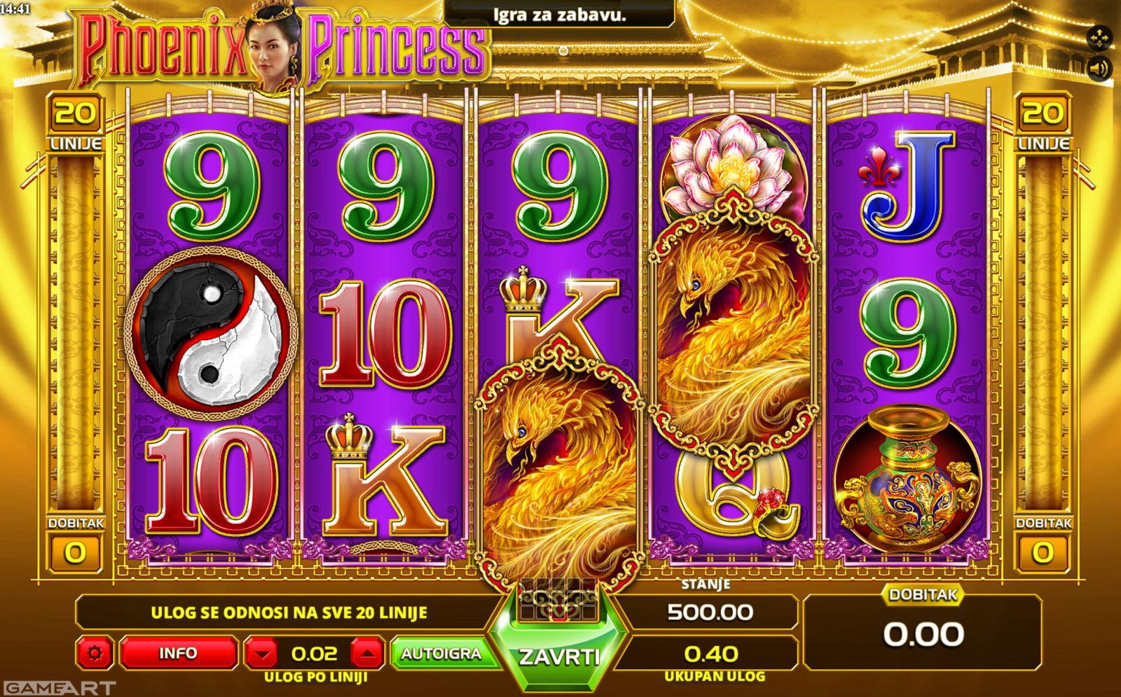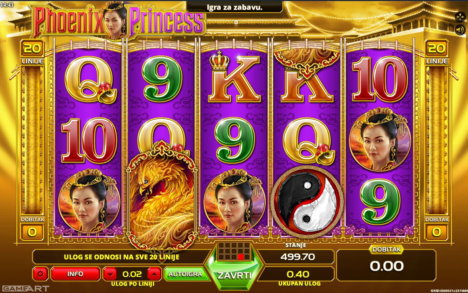 Phoenix Princess je video slot koji je razvio GameArt. Smješten u svijet istočne mitologije, igra se odvija na 5 koluta i 3 reda s 20 isplatnih linija. Tema igre uključuje simbole poput princeze, zmajeva, cvjetova lotosa, vaza i standardnih kartičnih simbola. Pozadina igre prikazuje zlatnu palaču i vatrenog feniksa, stvarajući mističnu atmosferu.