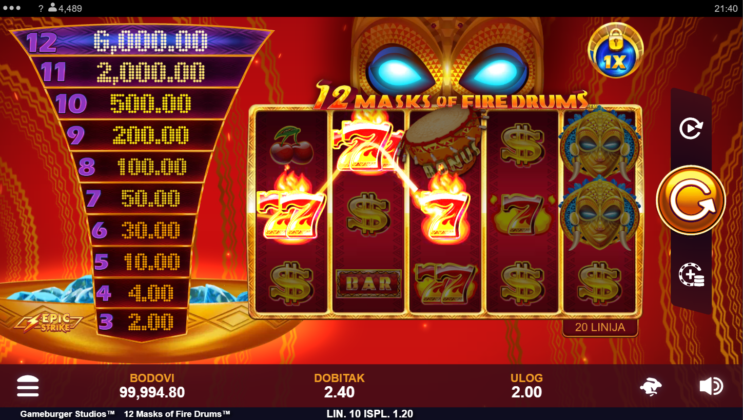 2. Ima li 12 Masks of Fire Drums jackpot?