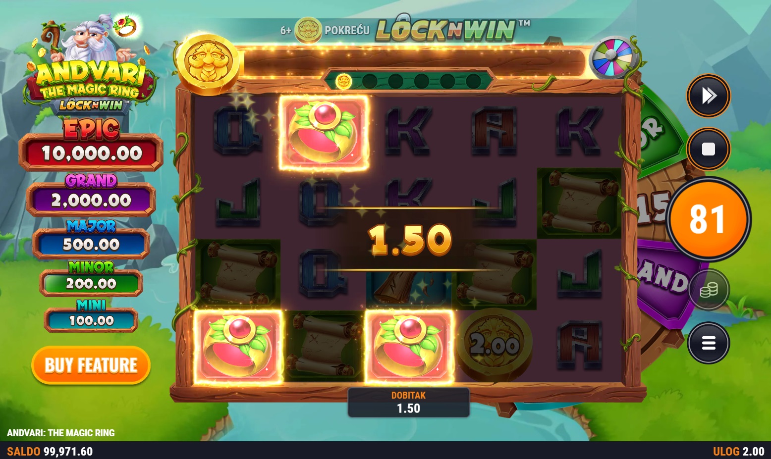 Andvari The Magic Ring ima RTP (povrat igraču) od 96,05%, što znači da igra nudi solidne šanse za dobitak. Volatilnost je srednja, što znači da možeš očekivati česte, ali manje dobitke. Ova igra je savršena za igrače koji vole balans između rizika i nagrada.