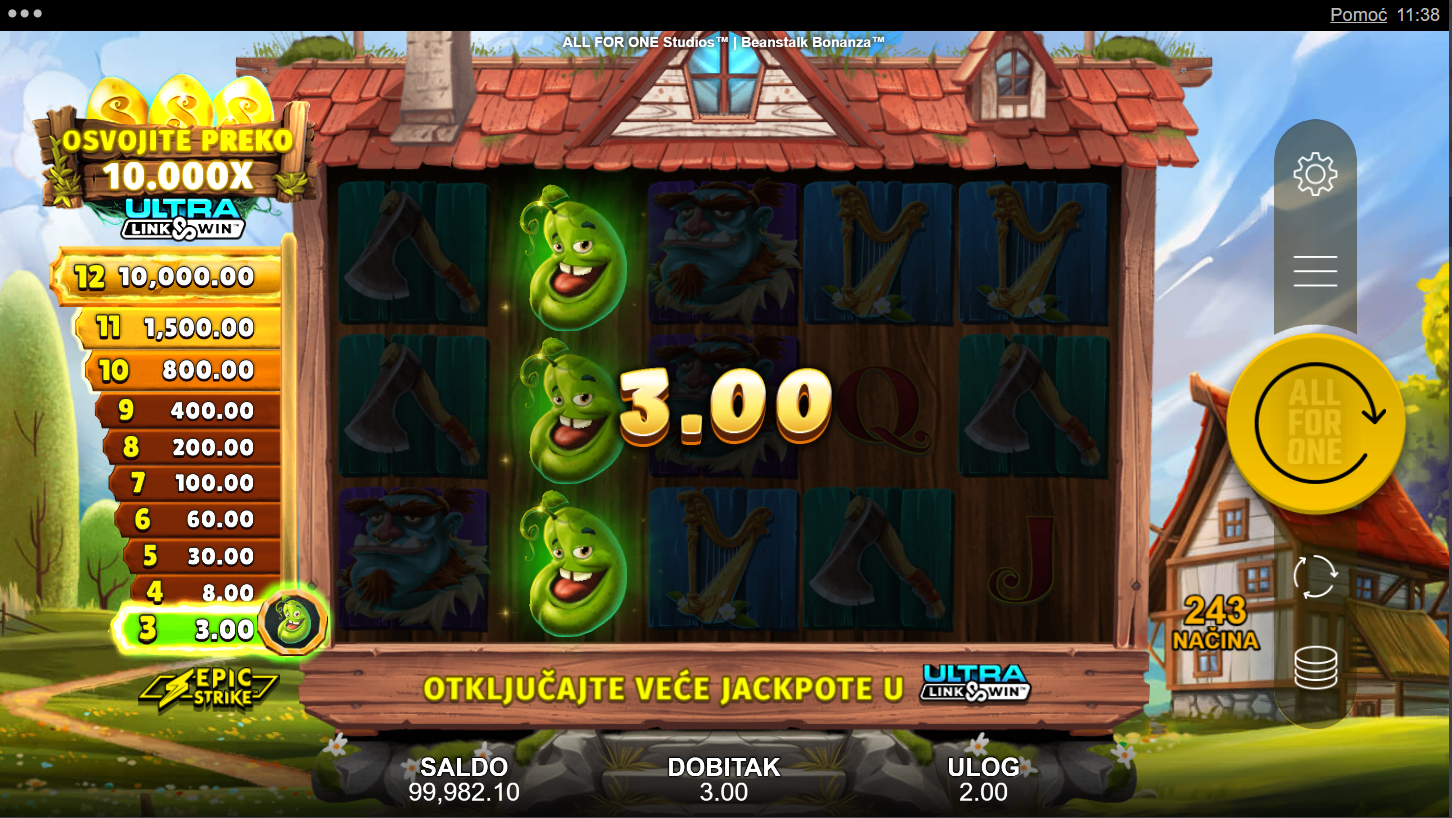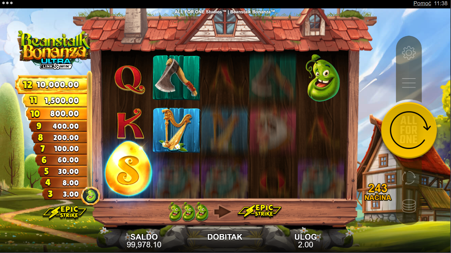 4. Koji su minimalni i maksimalni ulozi u igri Beanstalk Bonanza?