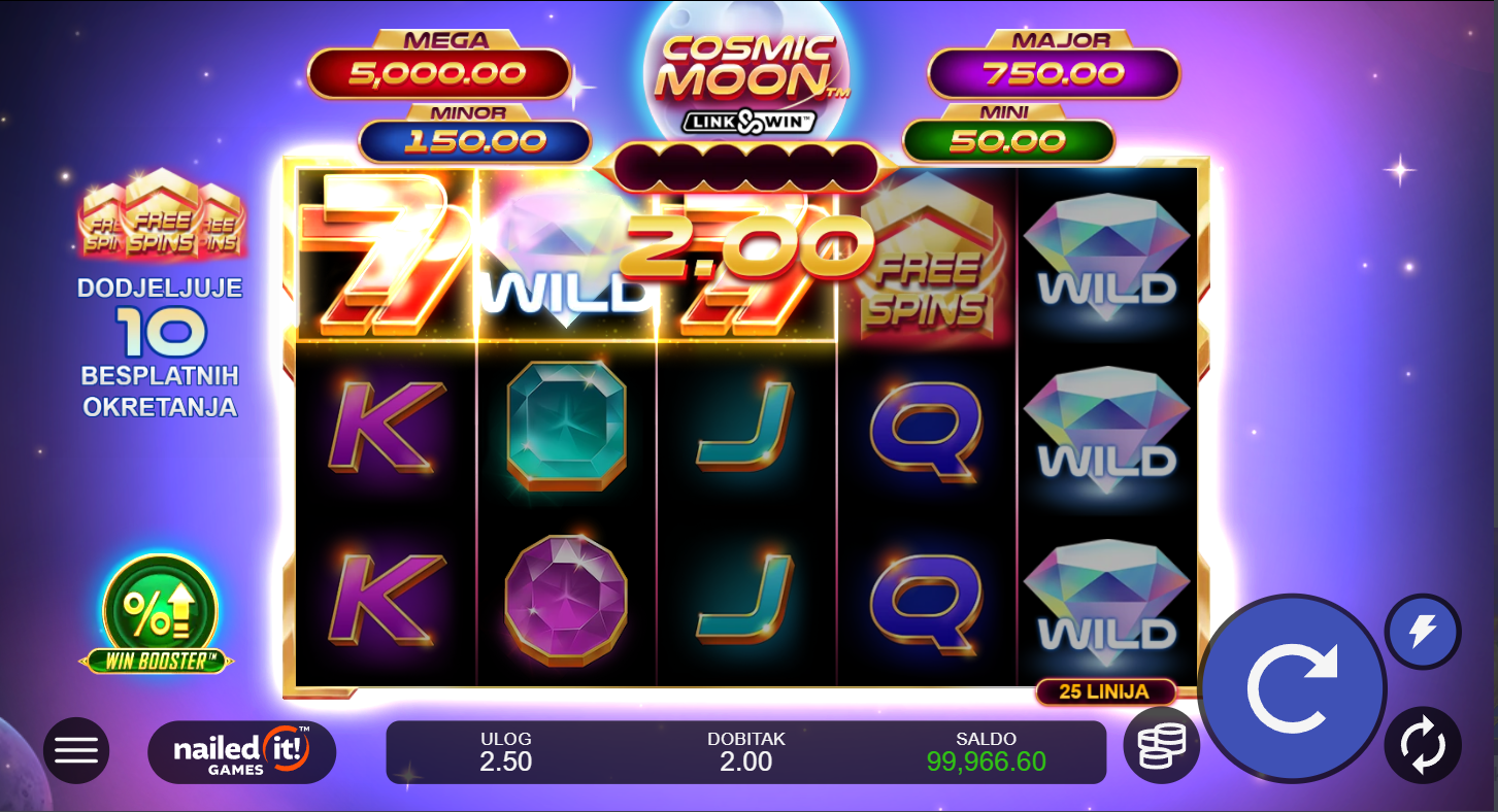 1. Ima li Cosmic Moon besplatne vrtnje?
