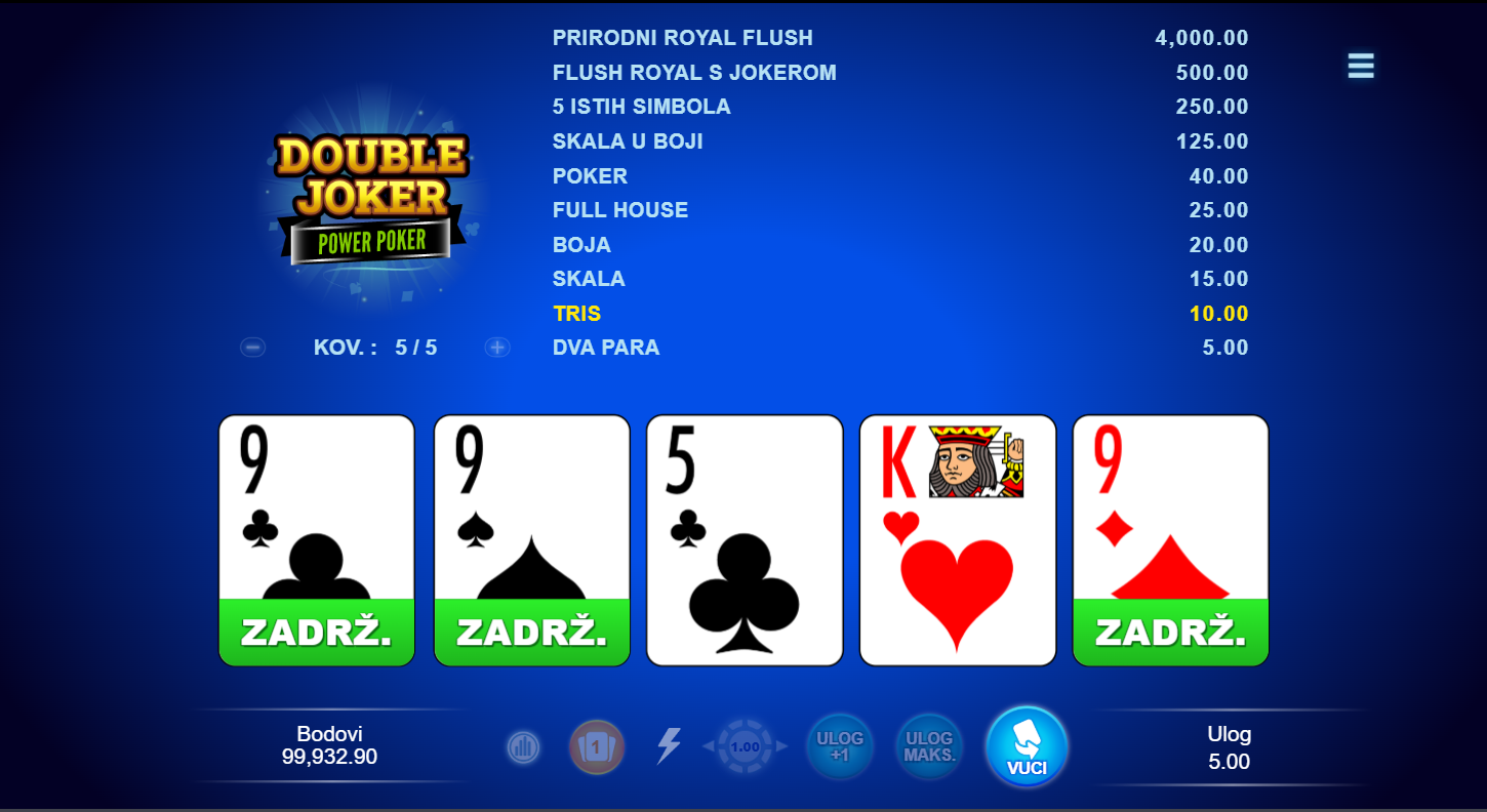 1. Ima li Double Joker - Power Poker besplatne vrtnje?