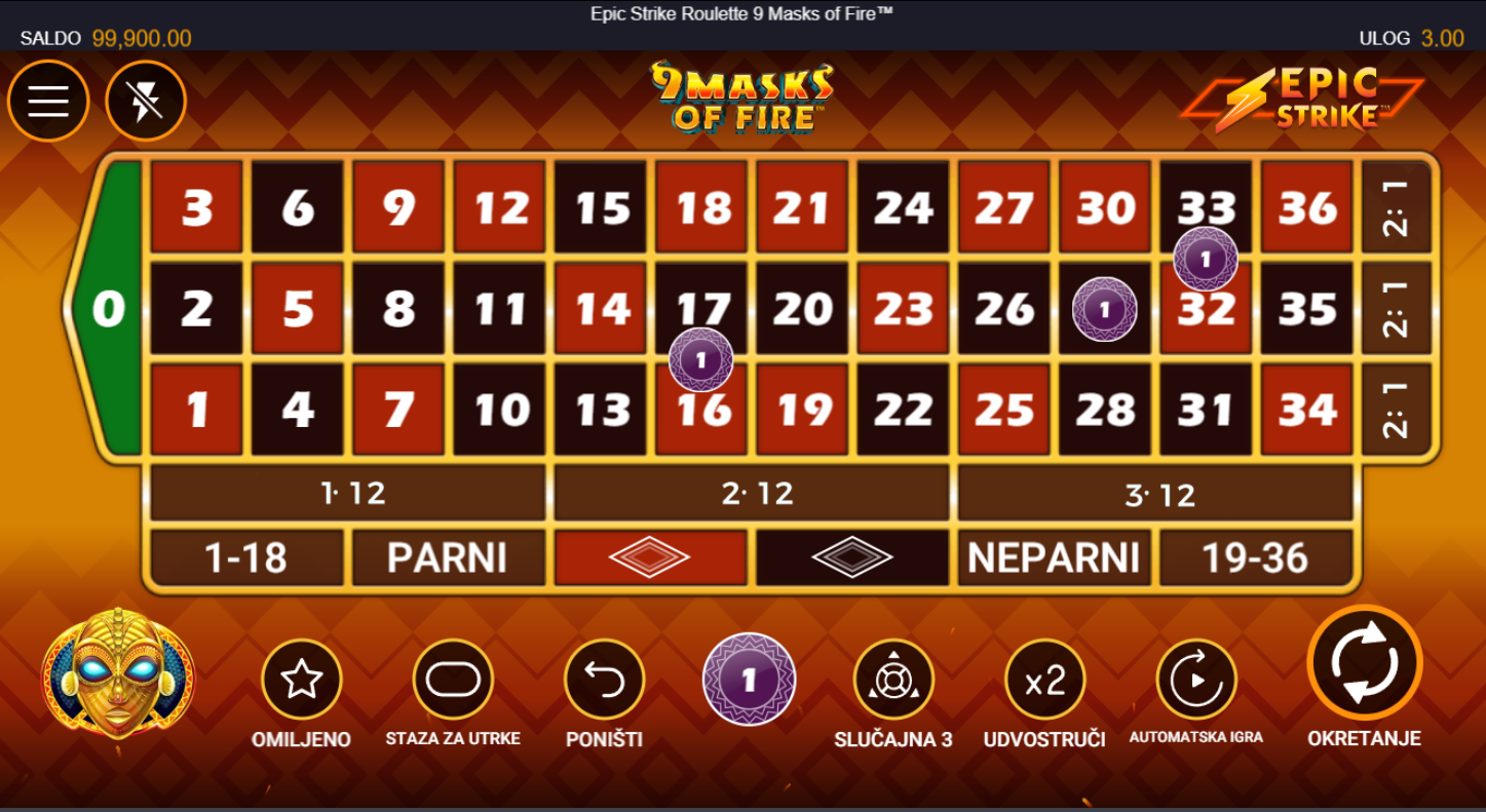 3. Da li je dostupna demo/probna verzija Epic Strike Roulette 9 Masks of Fire?
