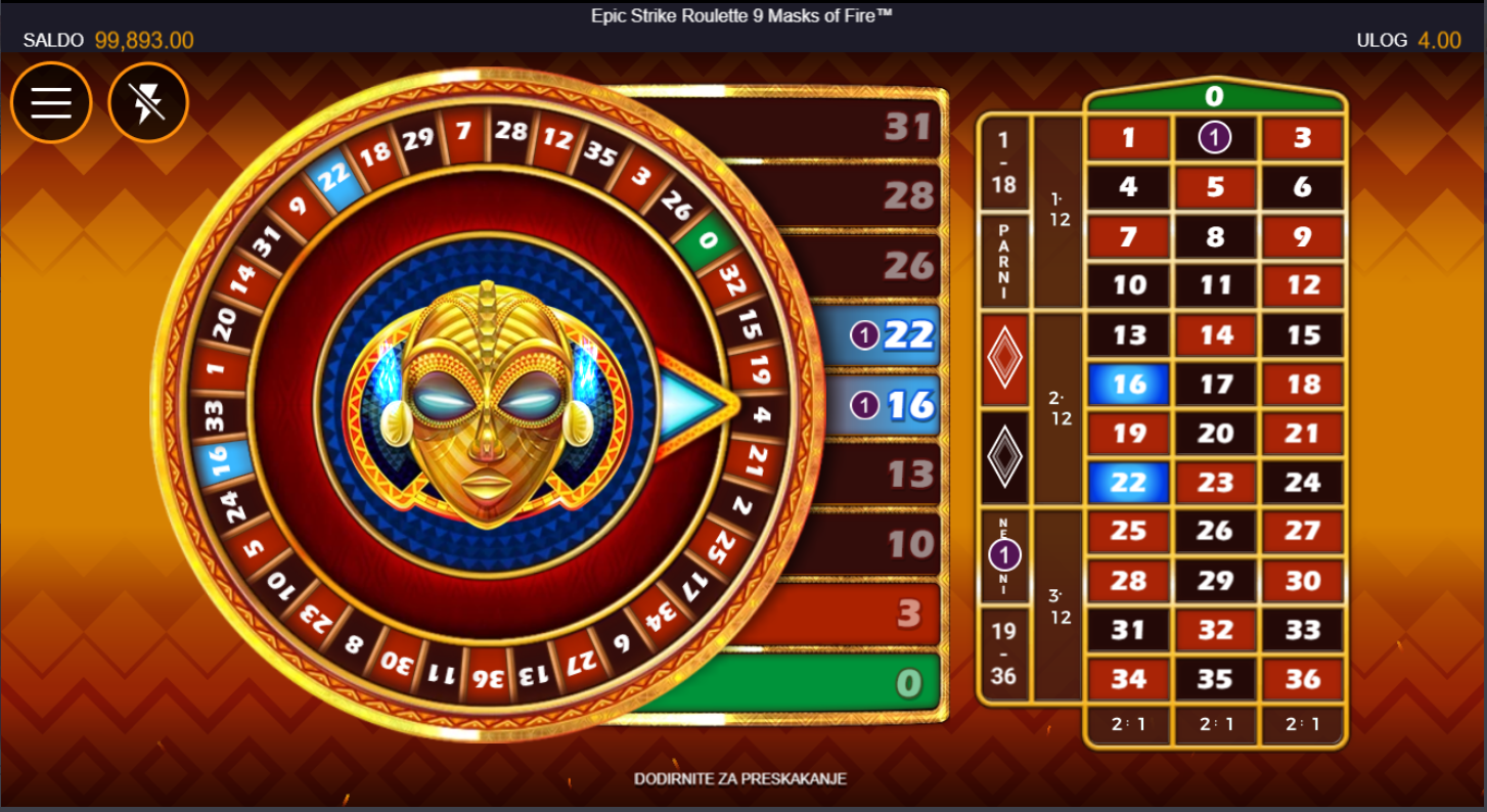 2. Ima li Epic Strike Roulette 9 Masks of Fire jackpot?