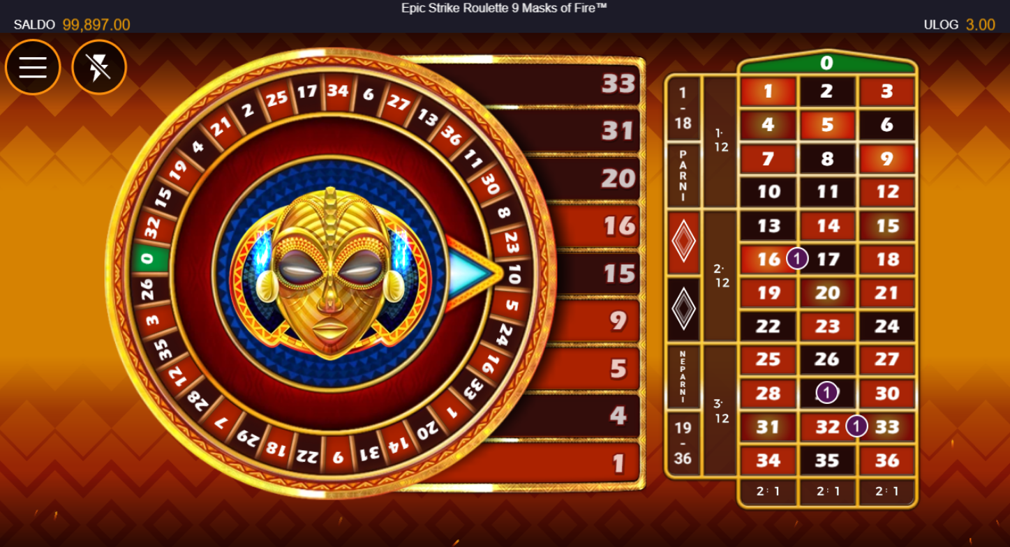 1. Ima li Epic Strike Roulette 9 Masks of Fire besplatne vrtnje?