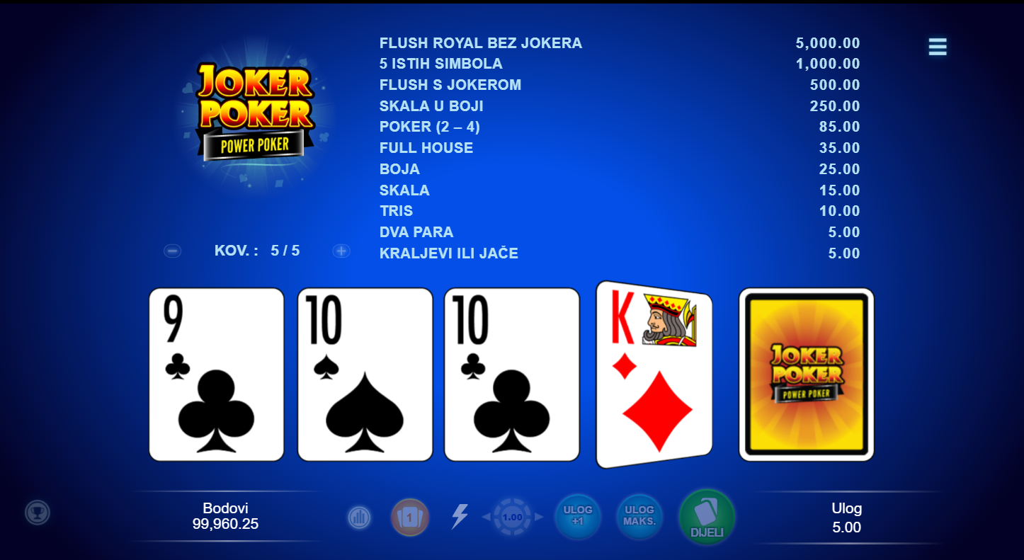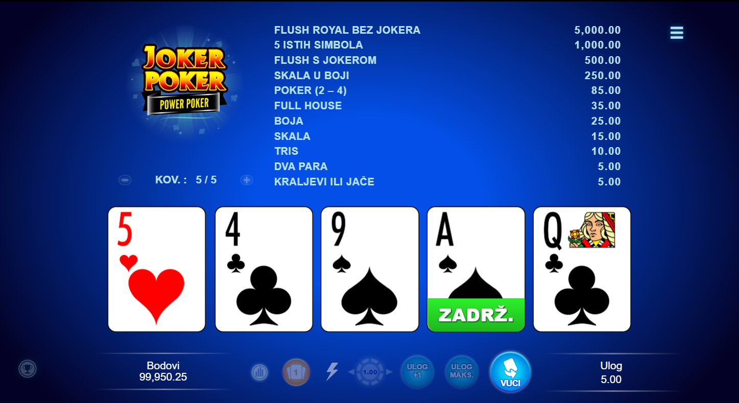 1. Ima li Joker Poker - Power poker besplatne vrtnje?
