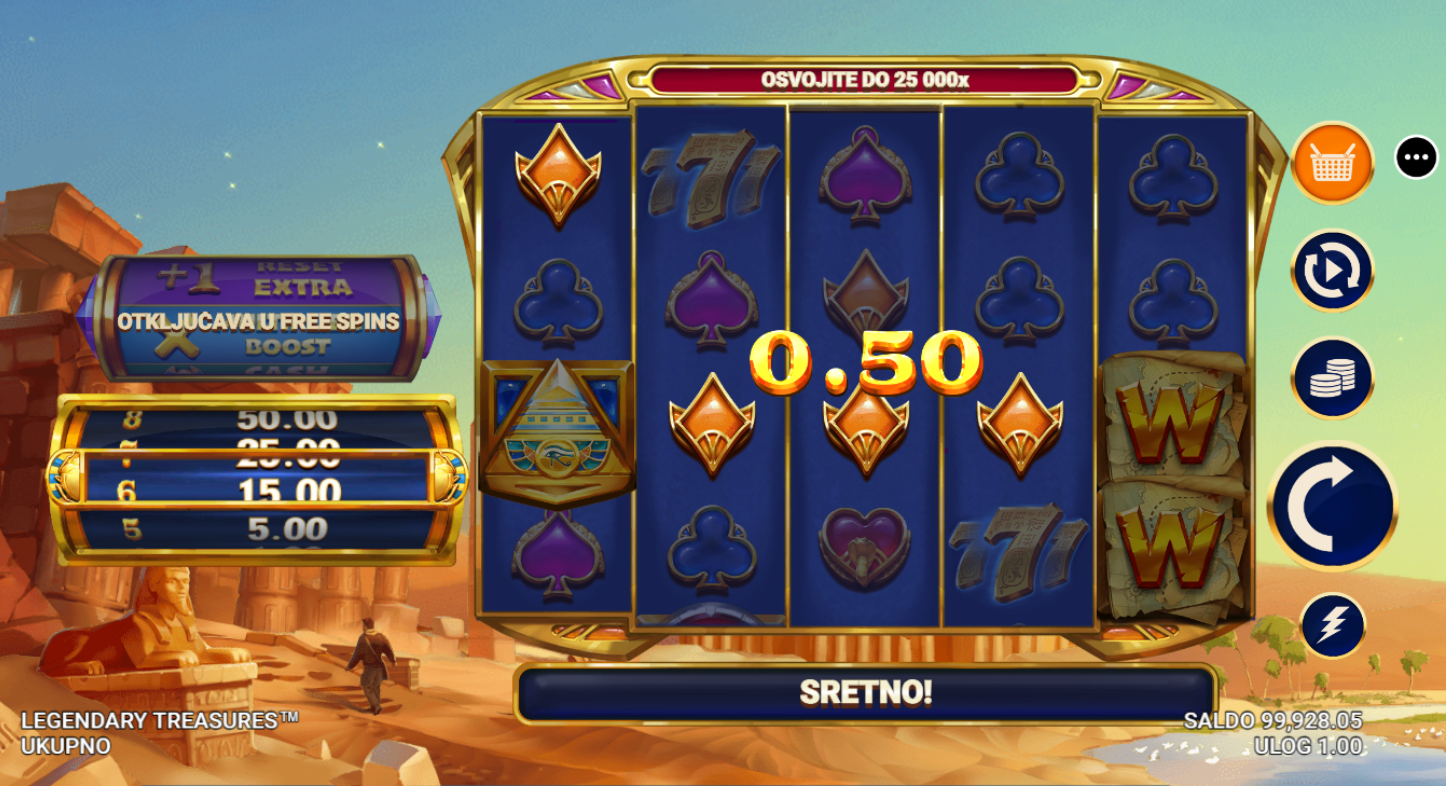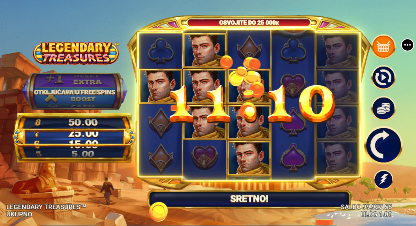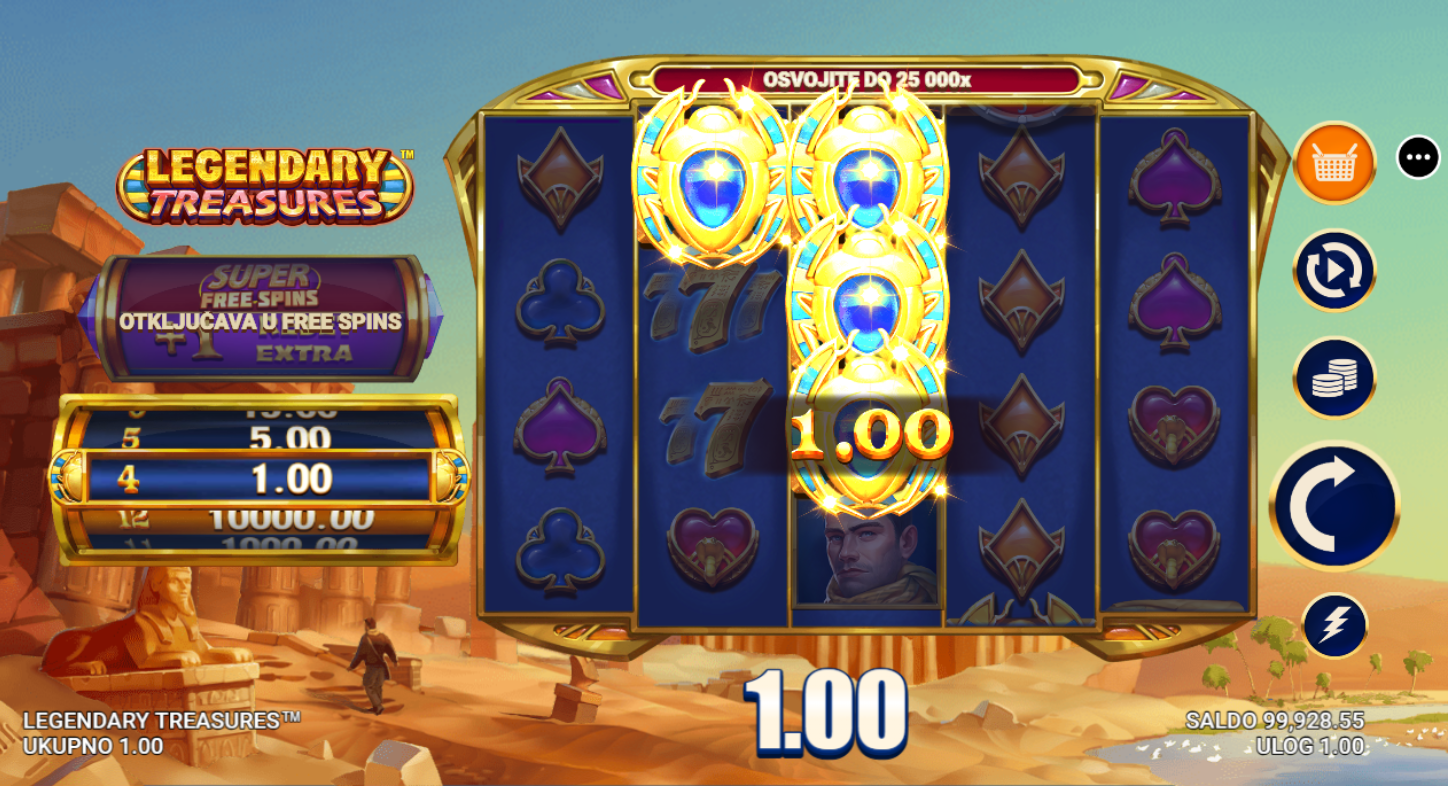 4. Koji su minimalni i maksimalni ulozi u igri Legendary Treasures?