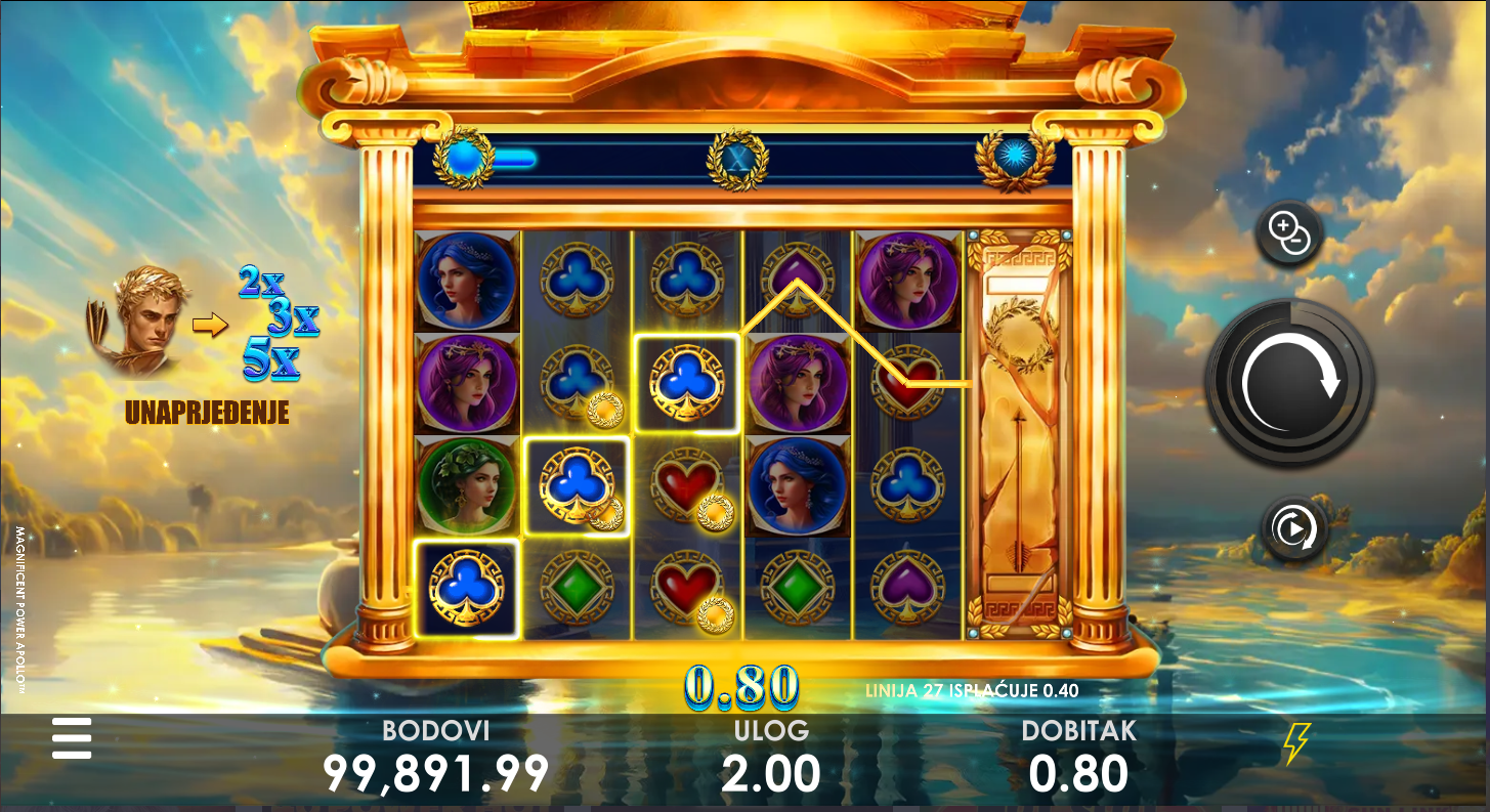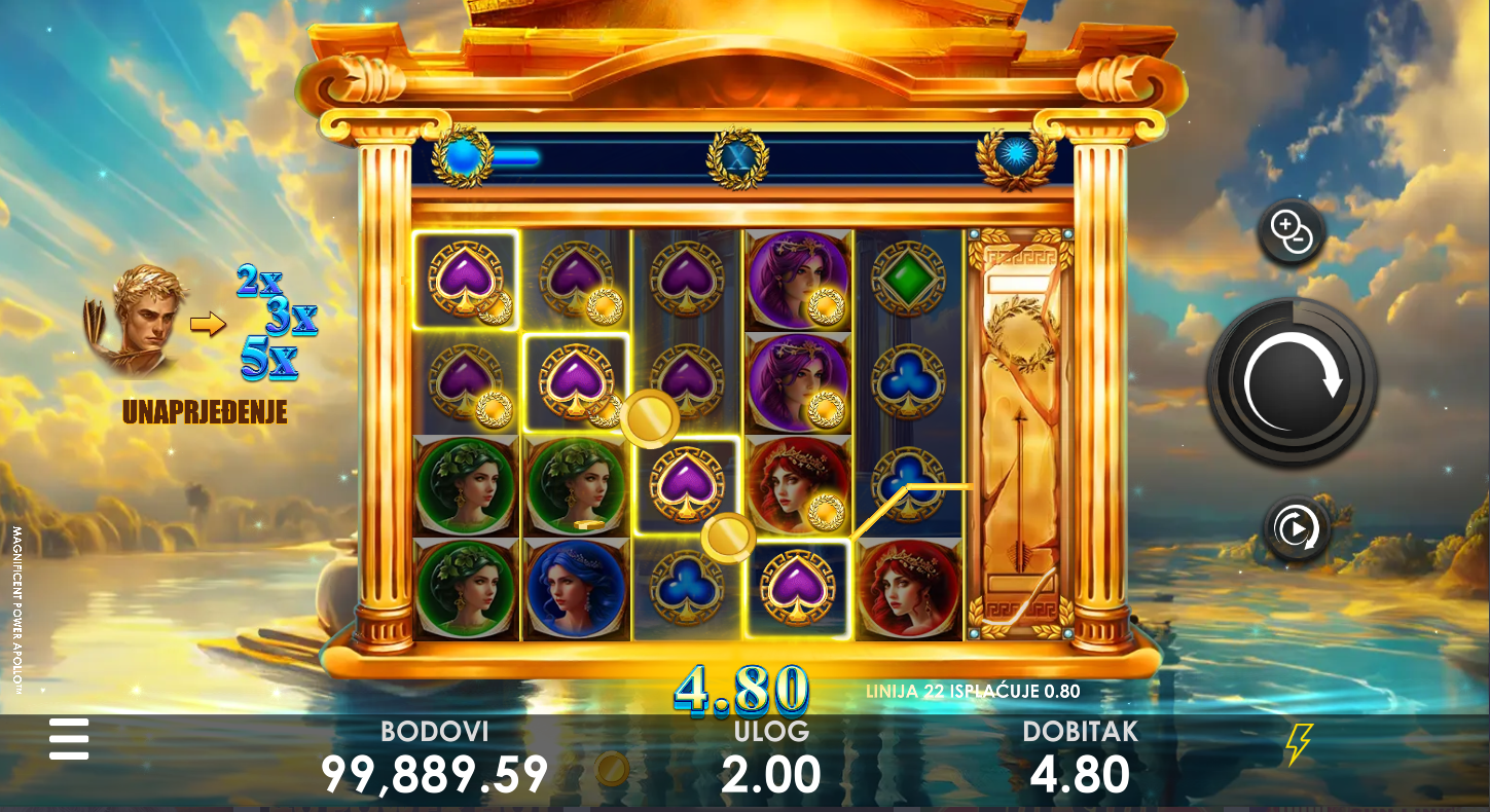 4. Koji su minimalni i maksimalni ulozi u igri Magnificent Power Apollo?