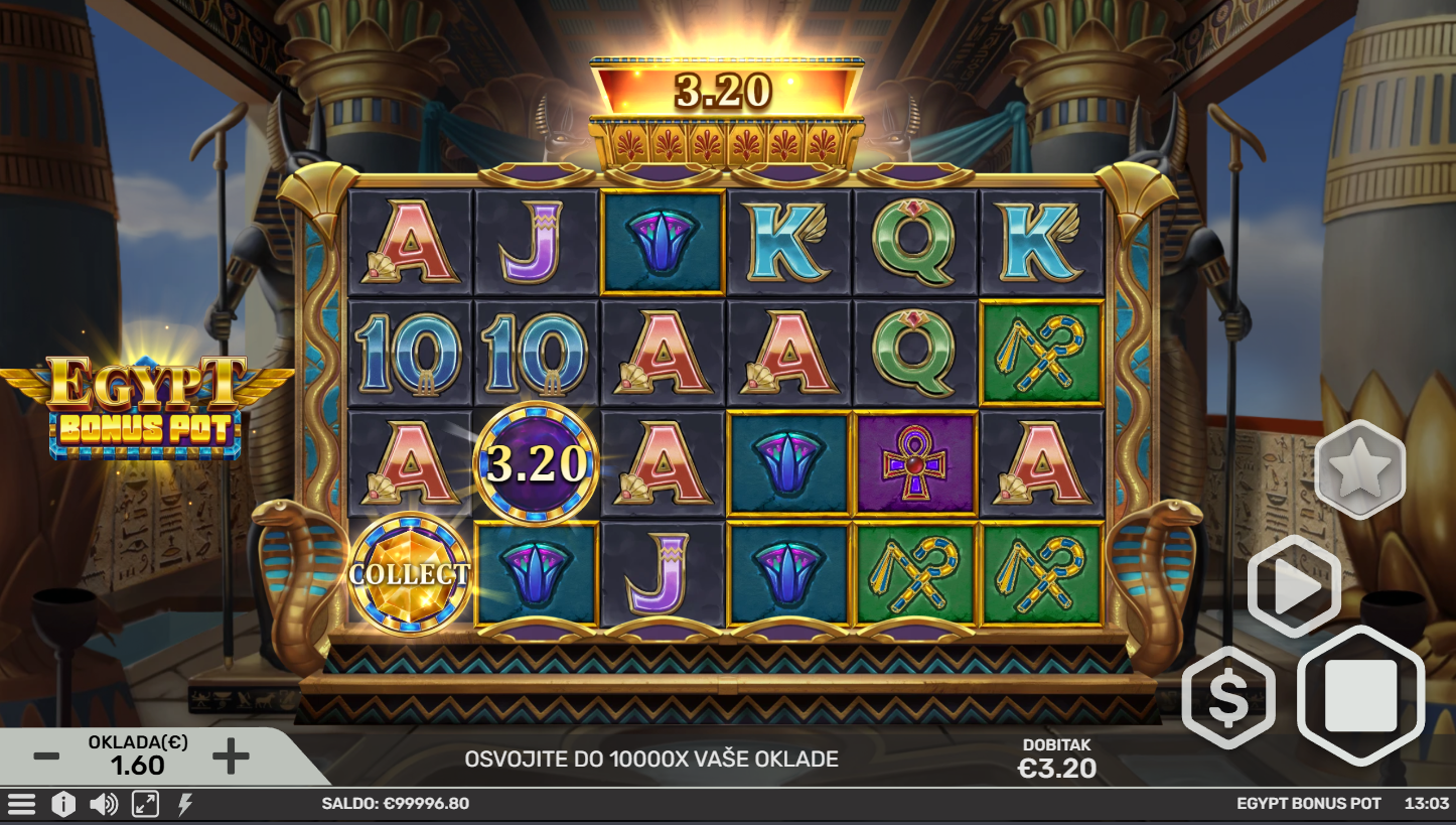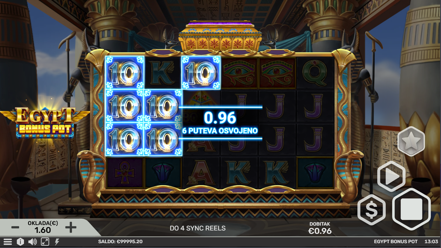 4. Koji su minimalni i maksimalni ulozi u igri Egypt Bonus Pot?