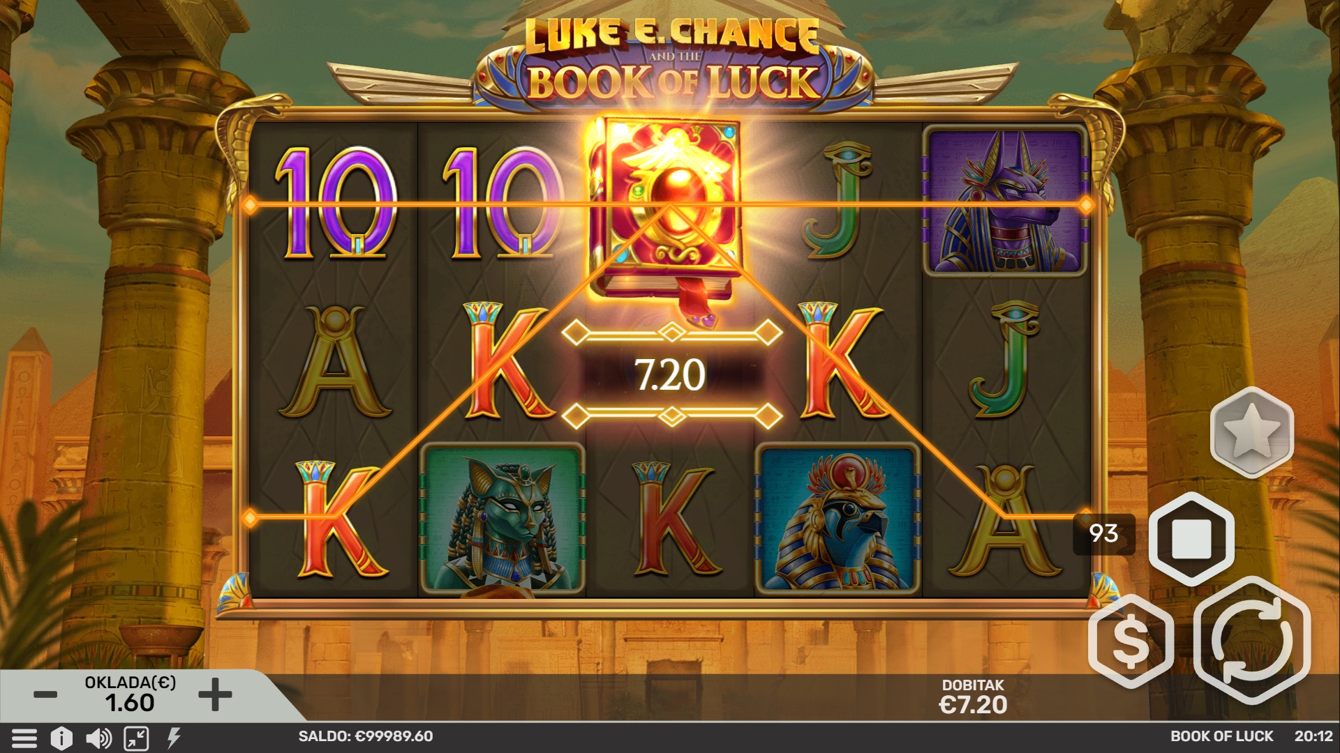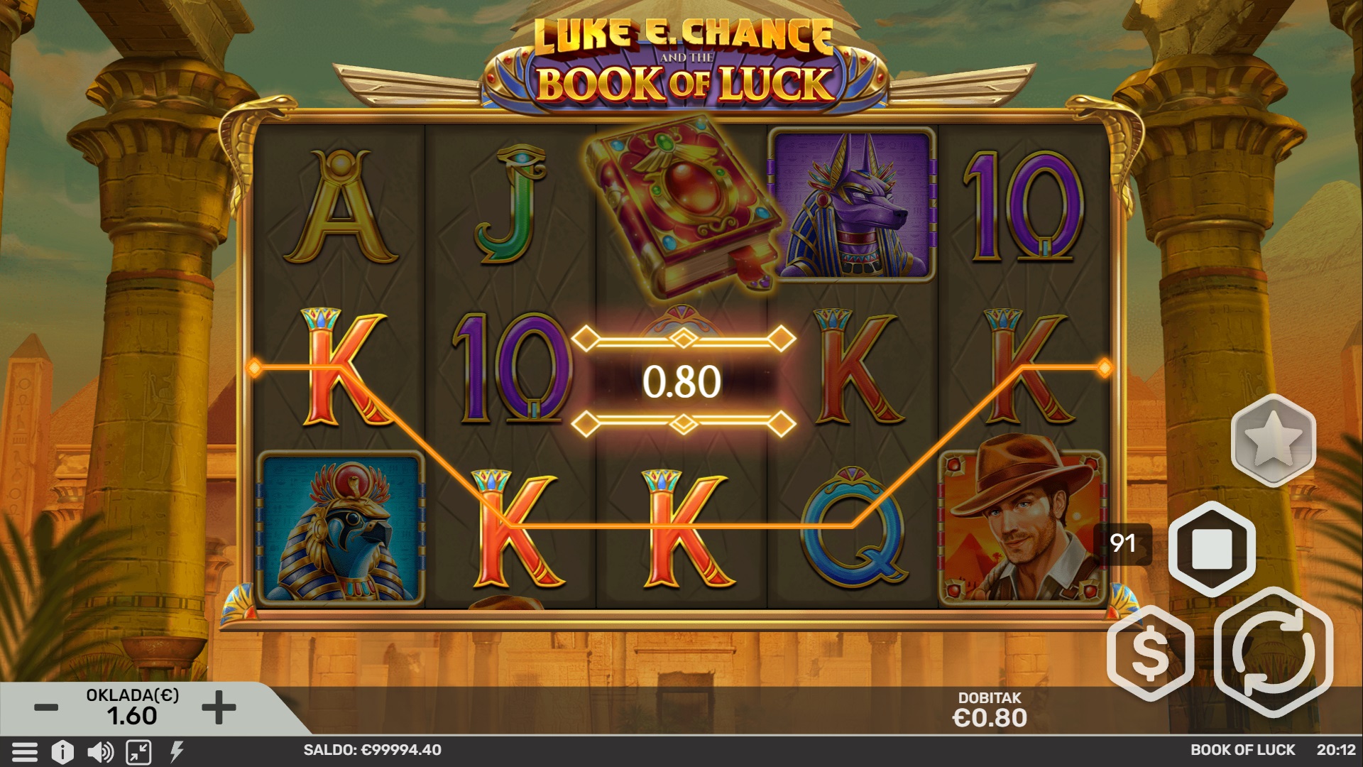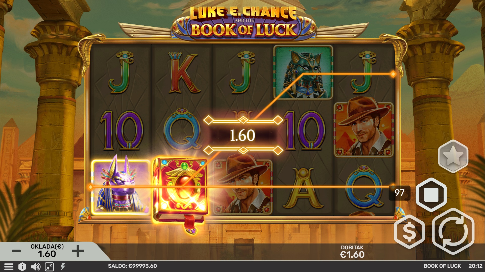 Luke E. Chance and the Book of Luck je uzbudljiva slot igra koja donosi mnogo mogućnosti za dobitak zahvaljujući inovativnim funkcijama poput Lucky Chance Re-Spin i Free Spins. Igra je postavljena na pet valjaka s tri simbola po valjku i deset isplatnih linija. Simbol Book je u središtu pažnje, djelujući kao Wild i Scatter simbol, zamjenjujući druge simbole i omogućujući formiranje dobitnih kombinacija. Uz to, 3 ili više simbola Book donose 10 besplatnih vrtnji, dok samo 2 simbola pokreću Lucky Chance Re-Spin, pružajući ti dodatne prilike za dobitak.