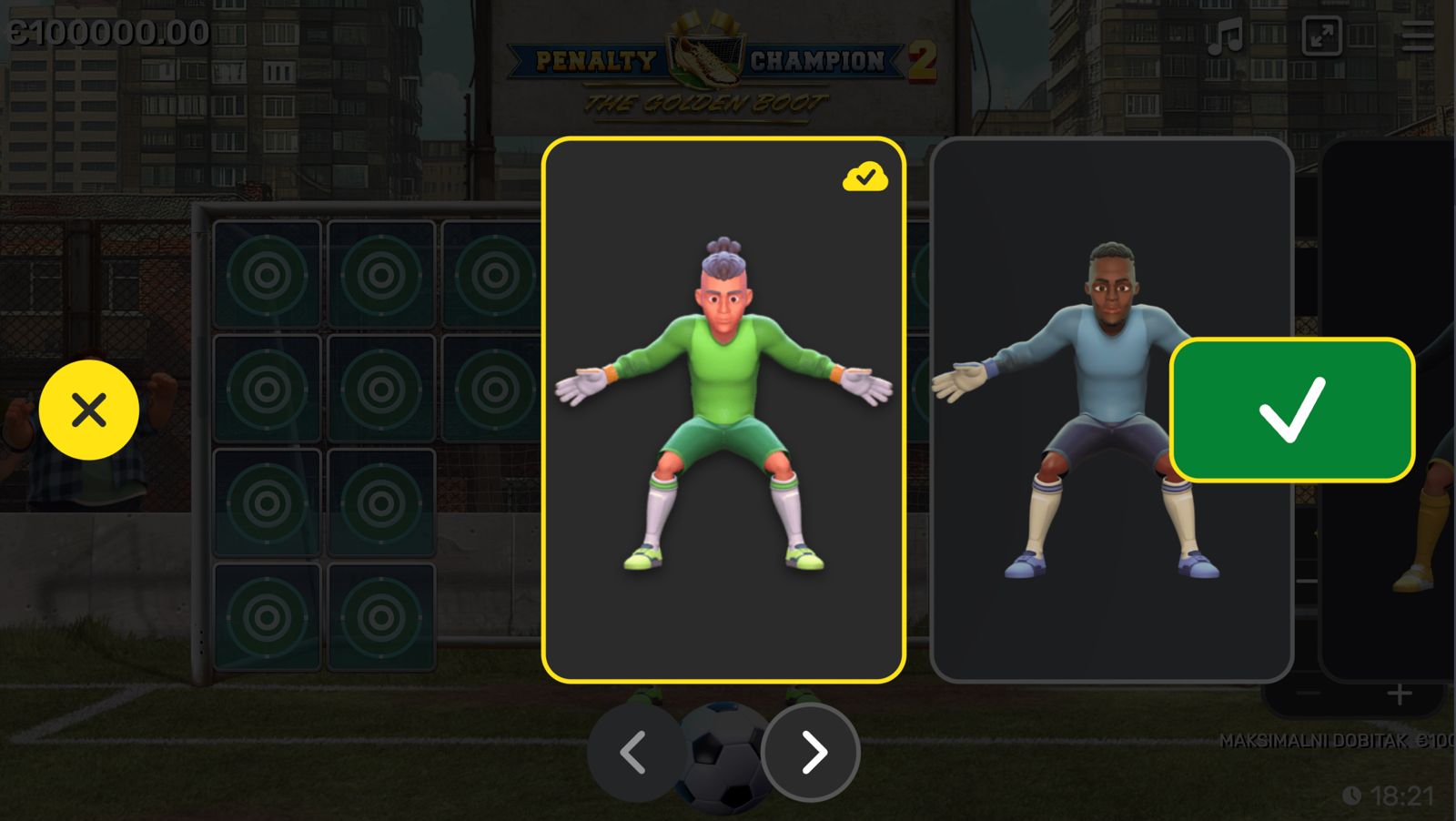 Odaberi ulog između 1,00 i 100,00 €, i pritisni spin. Dobici se generiraju kroz kombinacije simbola, a poseban Golden Boot bonus može ti dati dodatne šanse. Scatter simboli aktiviraju mini-igru ili izazov u kojem biraš udarce kako bi dobio multiplikatore i nagrade.
