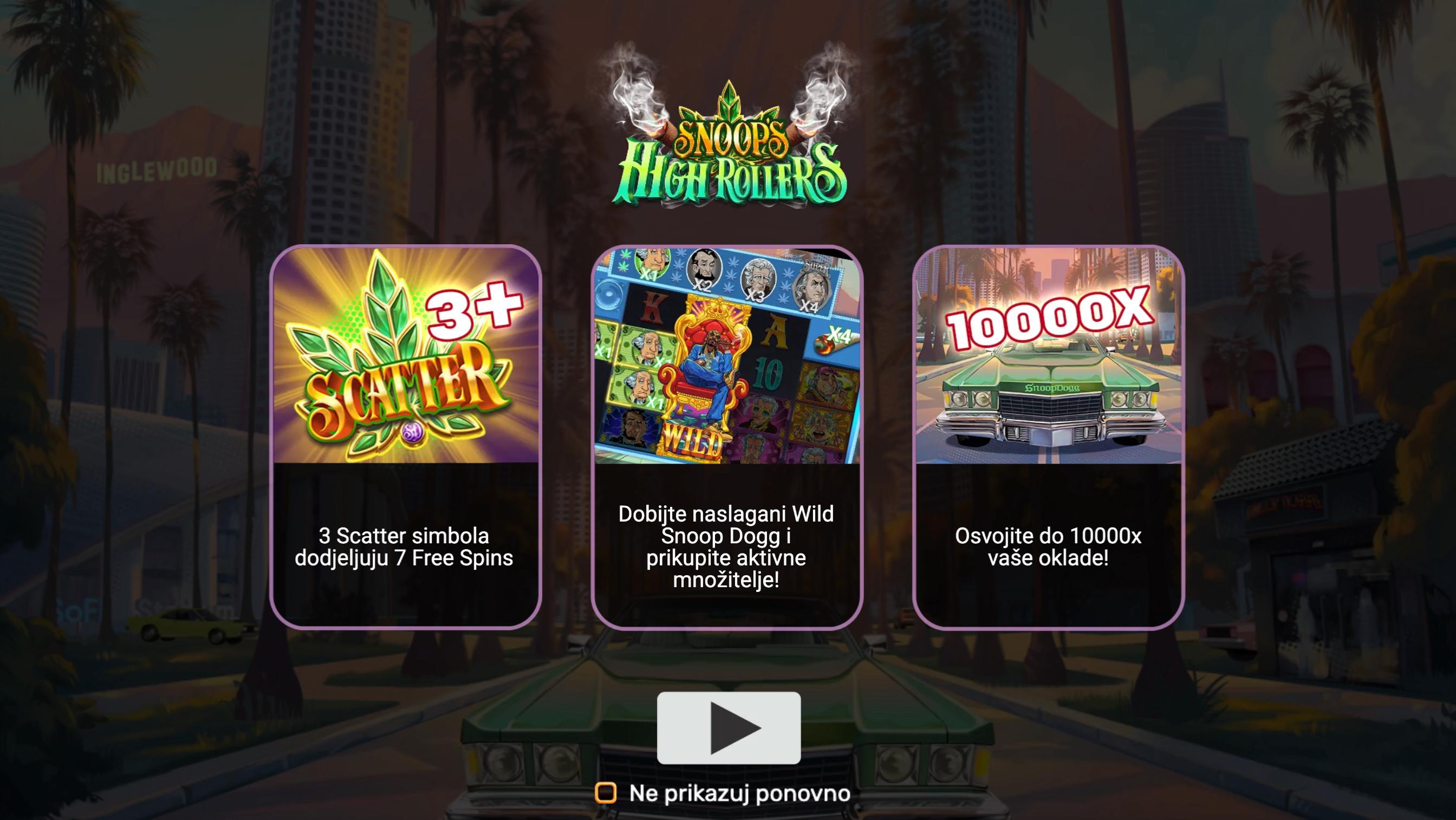 Snoop's High Rollers je video slot providera GamingCorps koji donosi Las Vegas atmosferu s 5 koluta i 576 načina dobitka. Igra nudi atraktivne značajke poput besplatnih vrtnji, multiplikatora i proširujućih Wild simbola.