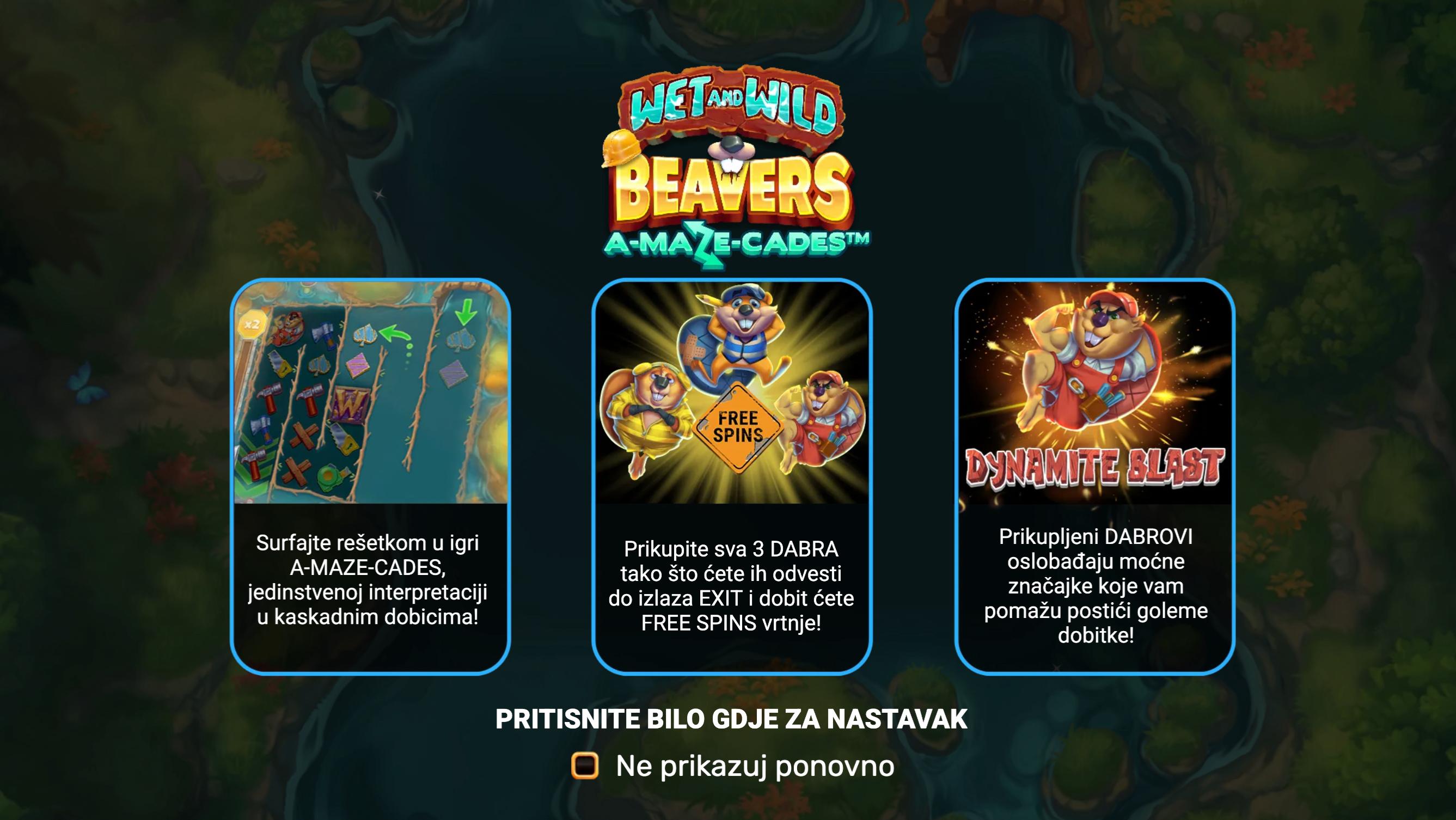 Odaberi željeni ulog i pokreni vrtnju. Dobitne kombinacije se stvaraju pomoću kaskadnih simbola, dok Wild dabrovi mogu pokrenuti različite bonus funkcije. Kada se simbol „Free Spins” pojavi i dođe do izlaza, aktiviraju se besplatne vrtnje s povećanim multiplikatorom. Cilj je skupljati simbole i povećavati dobitke uz pomoć posebnih značajki.