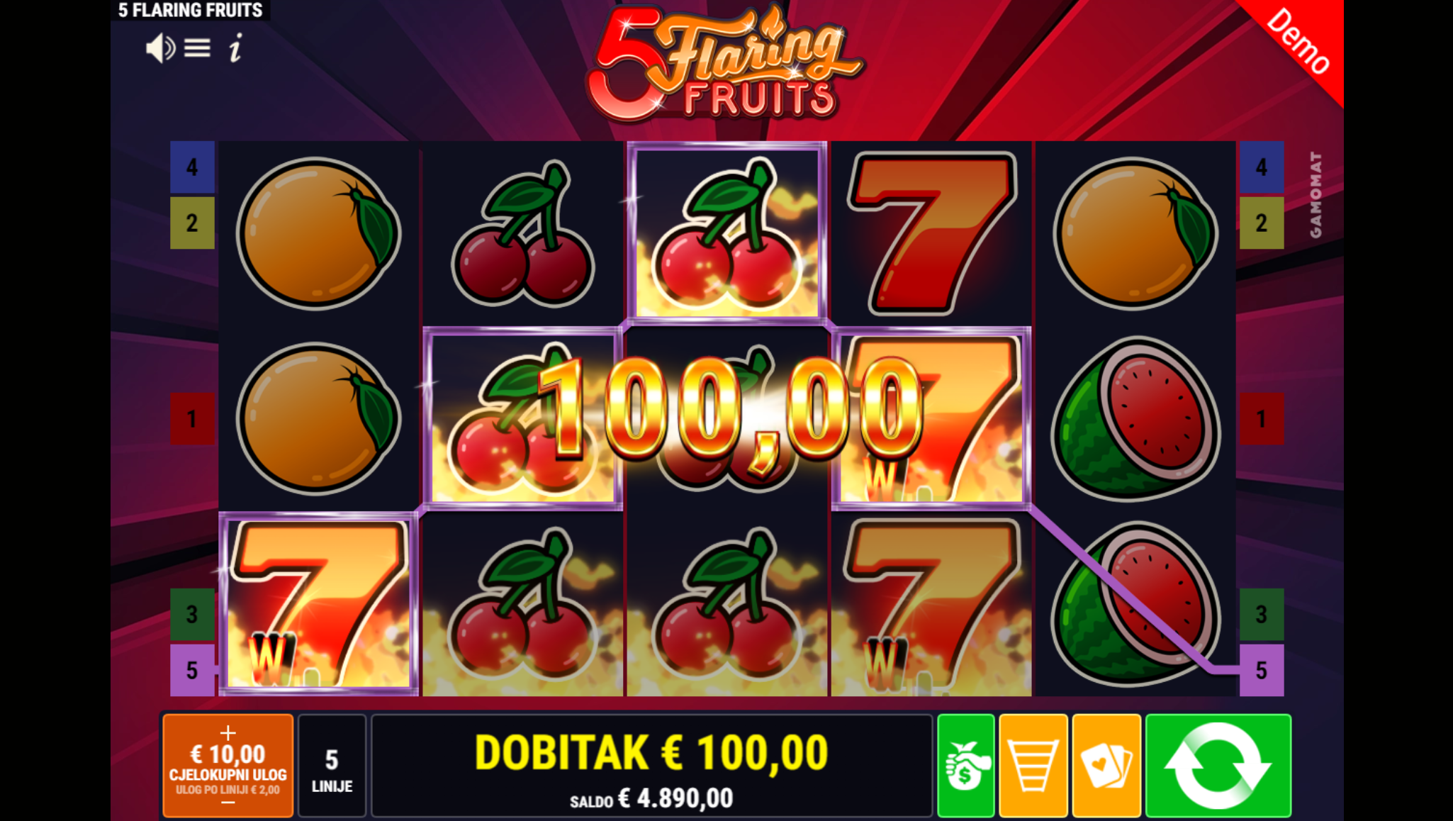 Igra 5 Flaring Fruits ima RTP u iznosu od 96.11%, što znači da igrači imaju dobre šanse za ostvariti dobitak. Volatilnost igre je srednja, što znači da igrači mogu očekivati česte, ali niže dobitke.