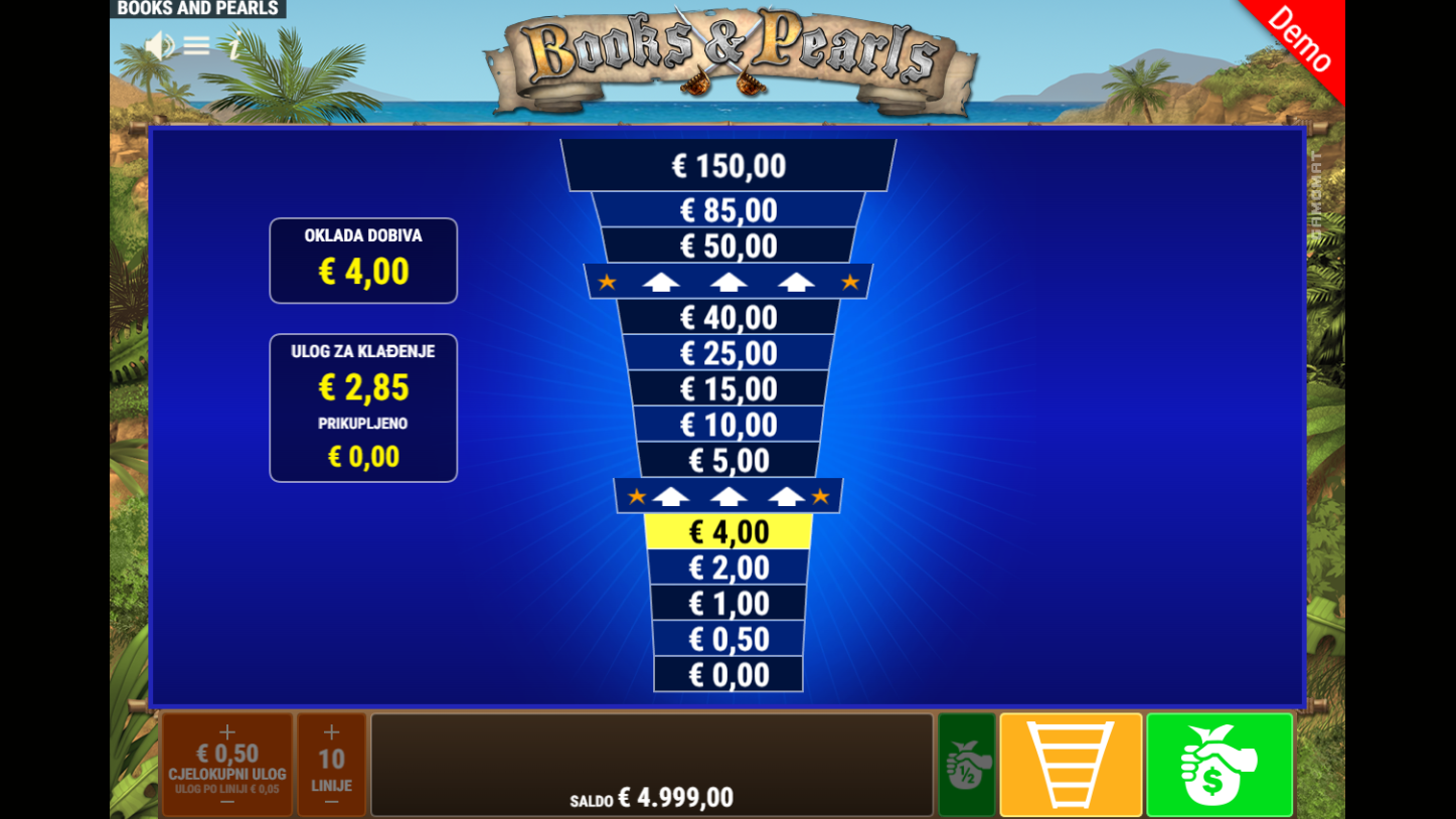 4. Koji su minimalni i maksimalni ulozi u igri Books & Pearls?