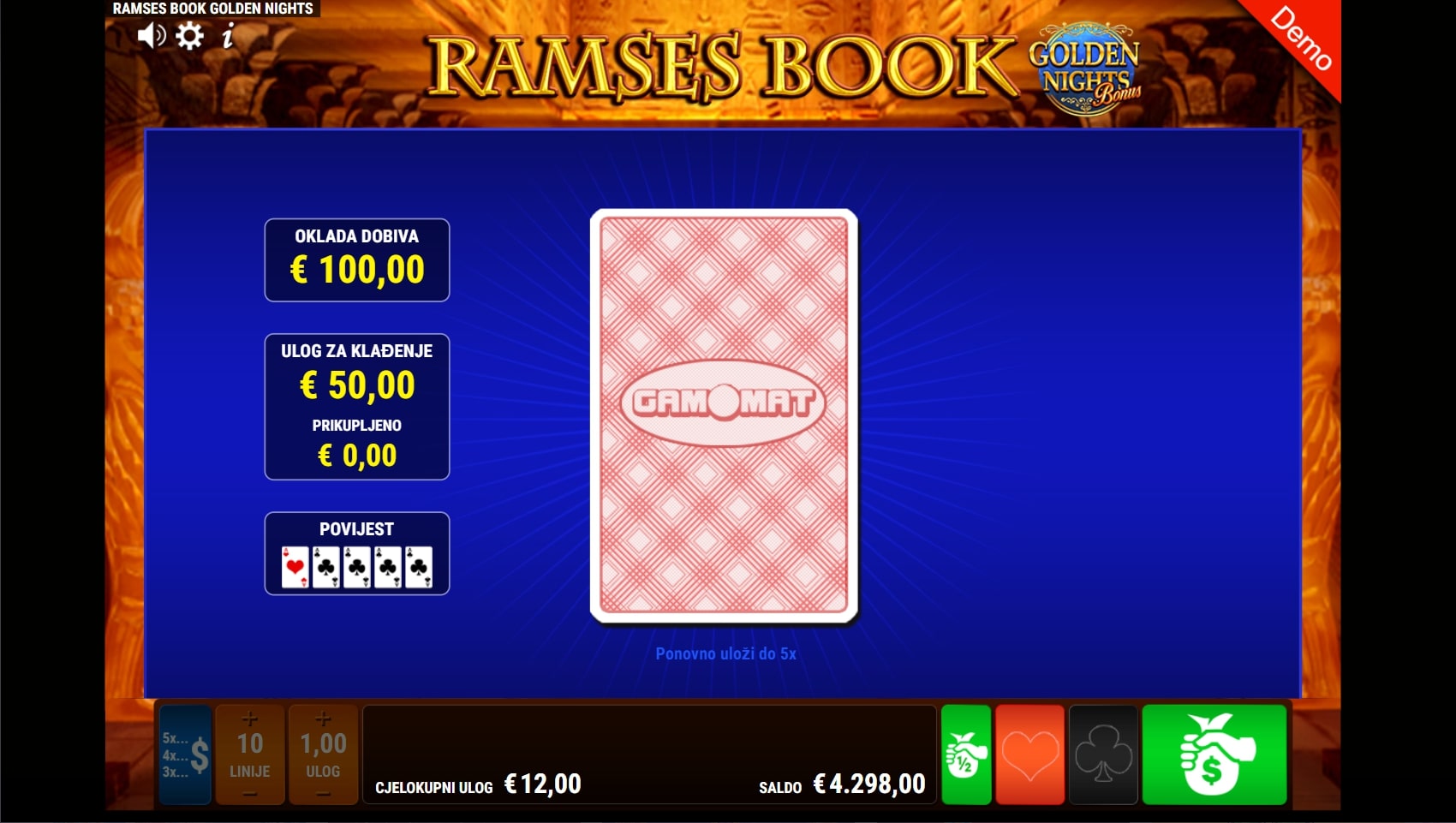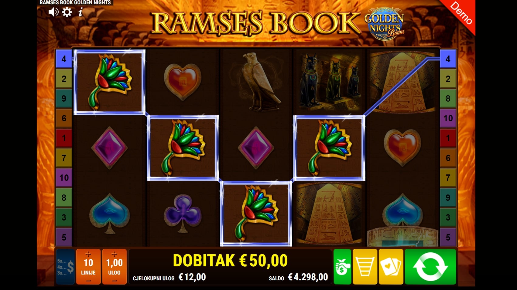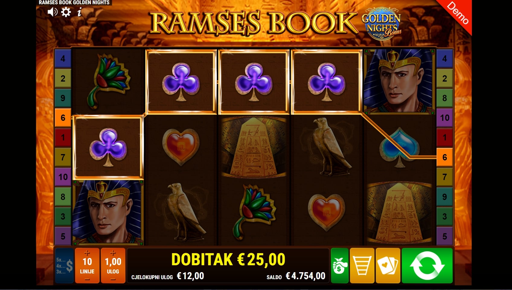 Ramses Book GDN slot je igra povijesne tematike koja igrača vodi u nezaboravnu avanturu egipatskim piramidama i hramovima. Igra je dio Ramses Book svemira igara, a tradicionalno najviše isplaćuju simboli faraona Ramzesa i relikata povezanih uz egipatsku mitologiju. Simbol knjige djeluje kao alfa i omega, a ono što igru čini posebnom je značajka Golden Nights Bonus koja može aktivirati Jackpot igru svakim okretajem. Zaigraj Ramses Book GDN te osvoji vrhunske nagrade!