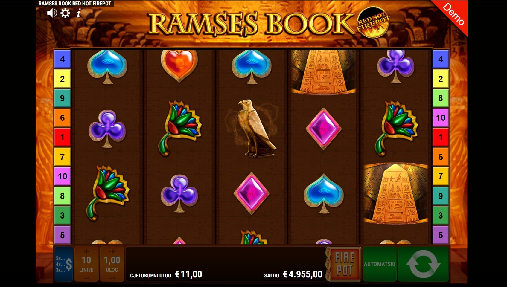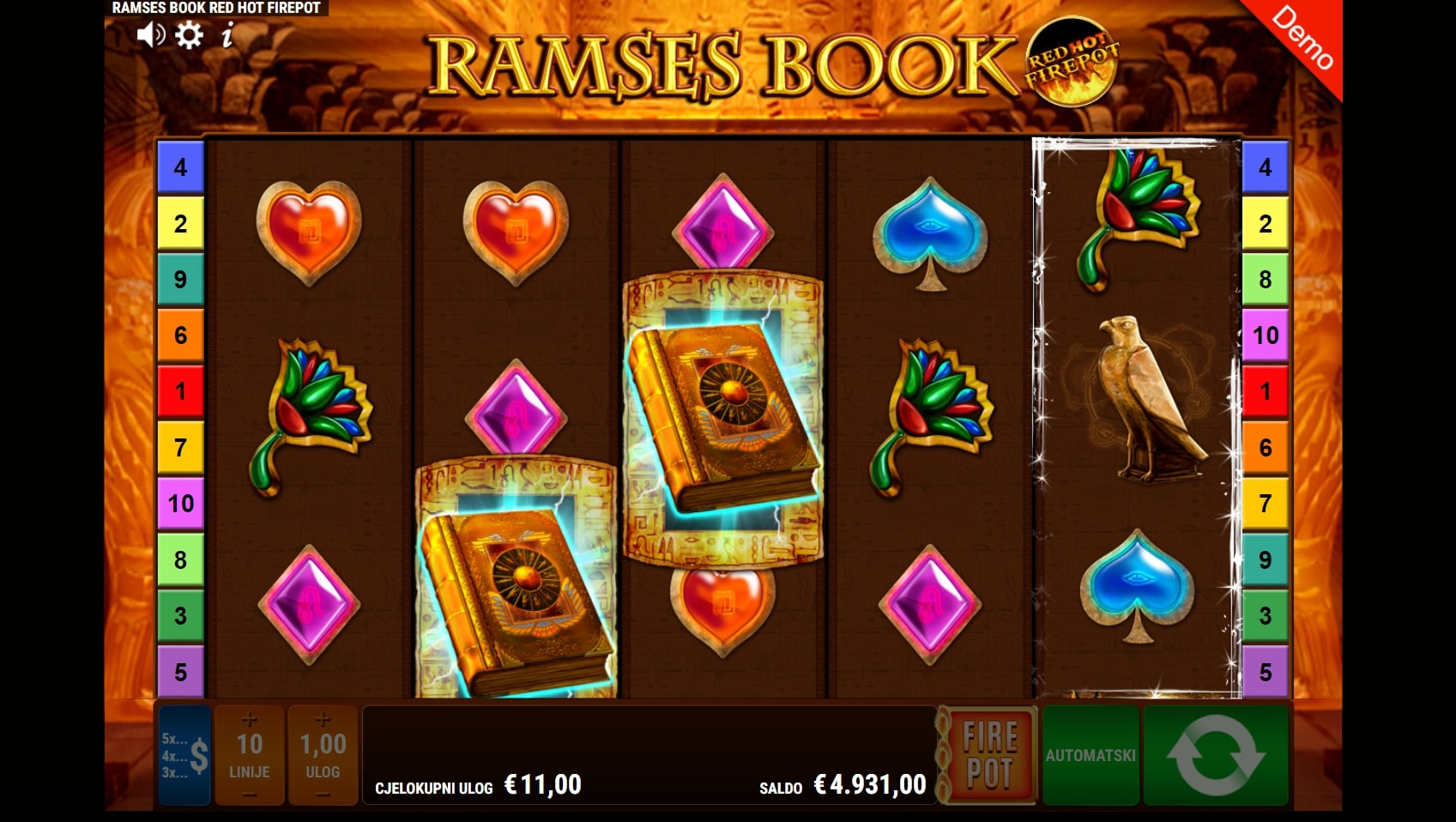 Ramses Book RHFP slot je igra povijesne tematike koja igrača vodi u nezaboravnu avanturu svijetom tajni drevnog Egipta. Igra je dio Ramses Book svemira igara, a tradicionalno najviše isplaćuju simboli faraona Ramzesa i relikata povezanih uz egipatsku mitologiju. Simbol knjige djeluje kao alfa i omega, a ono što igru čini posebnom je značajka Red Hot Firepot koja može aktivirati Jackpot igru svakim okretajem. Zaigraj Ramses Book RHFP te osvoji vrhunske nagrade!