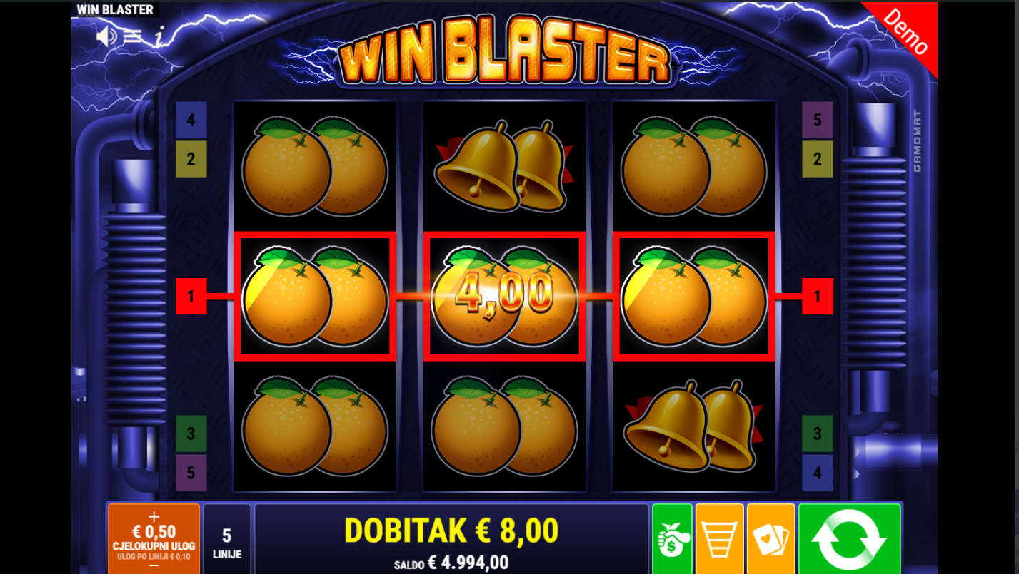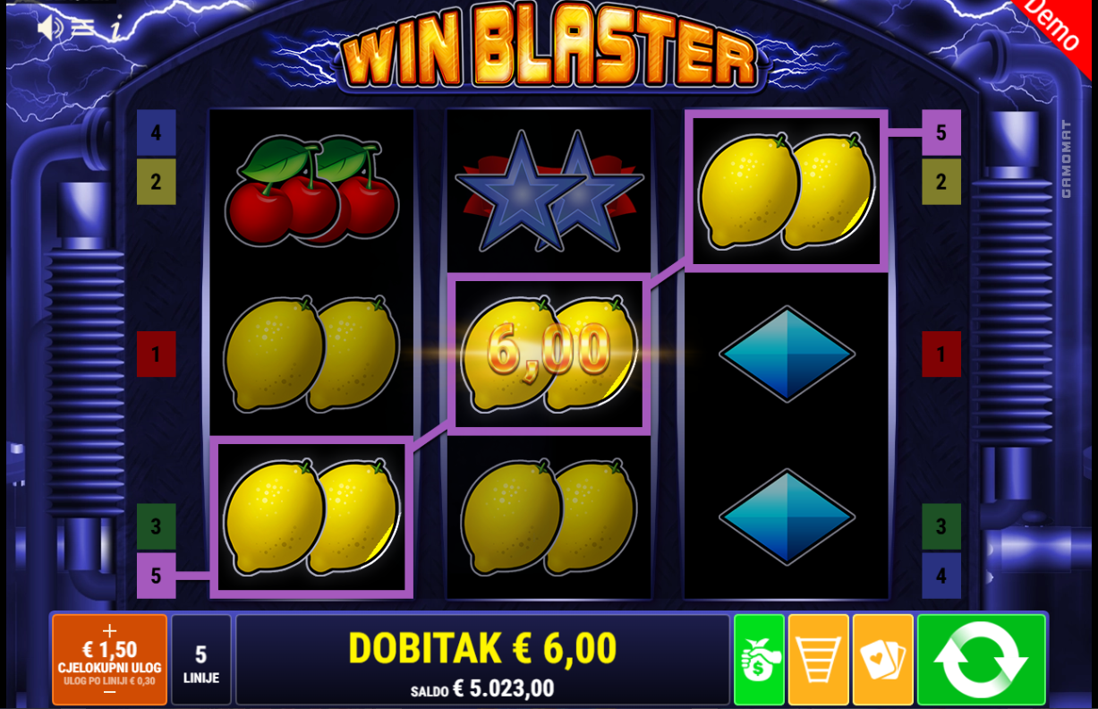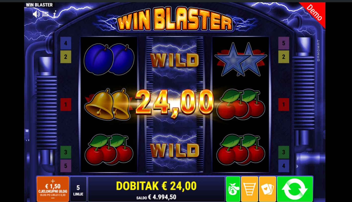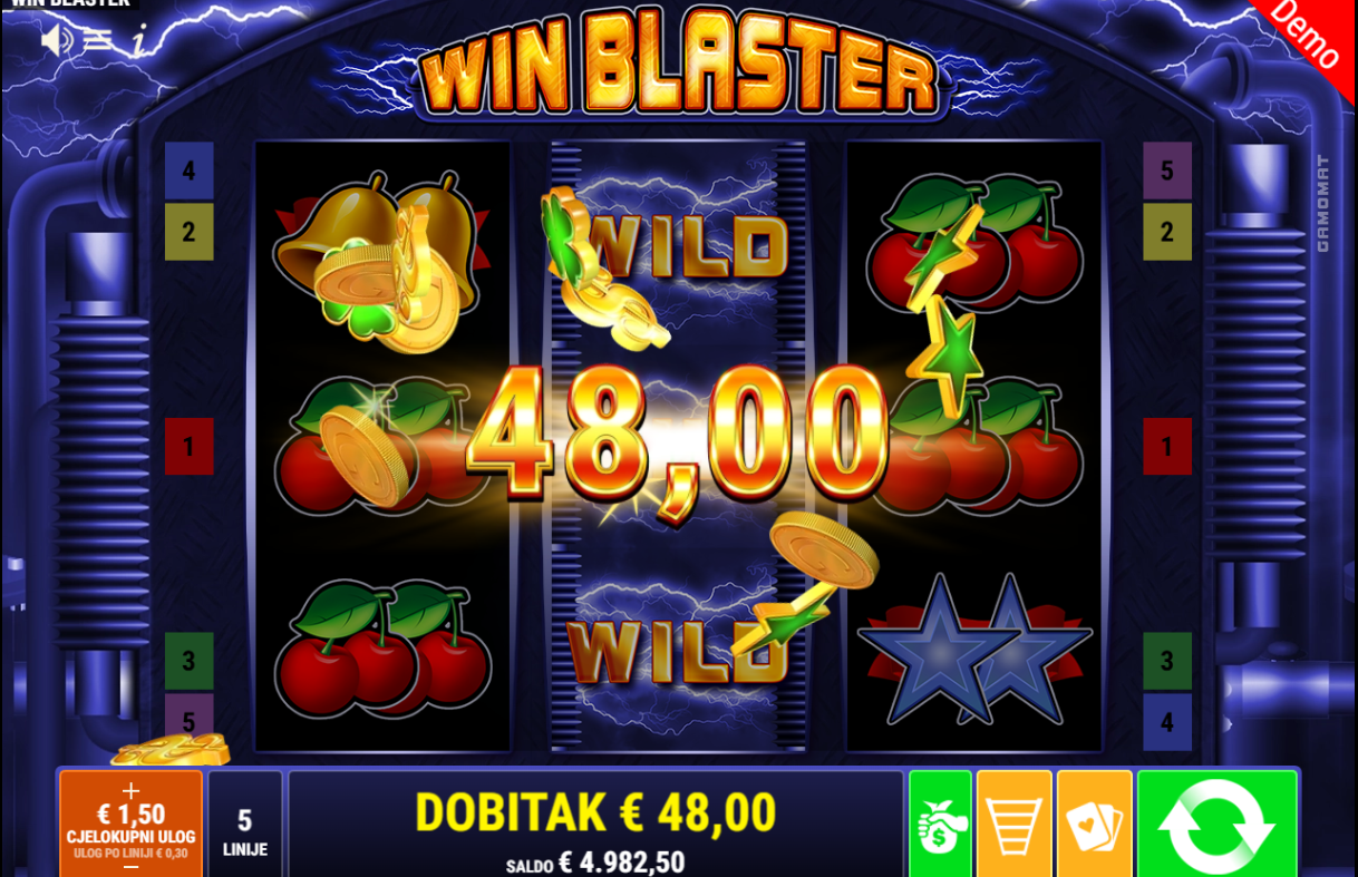 Win Blaster od Gamomat donosi igru koja kombinira jednostavnost tradicionalnih voćkica i dinamičan tempo suvremenih slotova. Simboli poput trešanja, limuna i zvona stvaraju autentičan old-school osjećaj!
