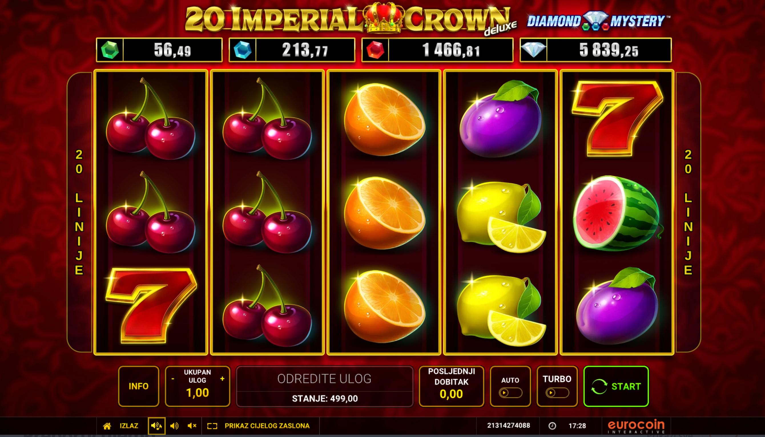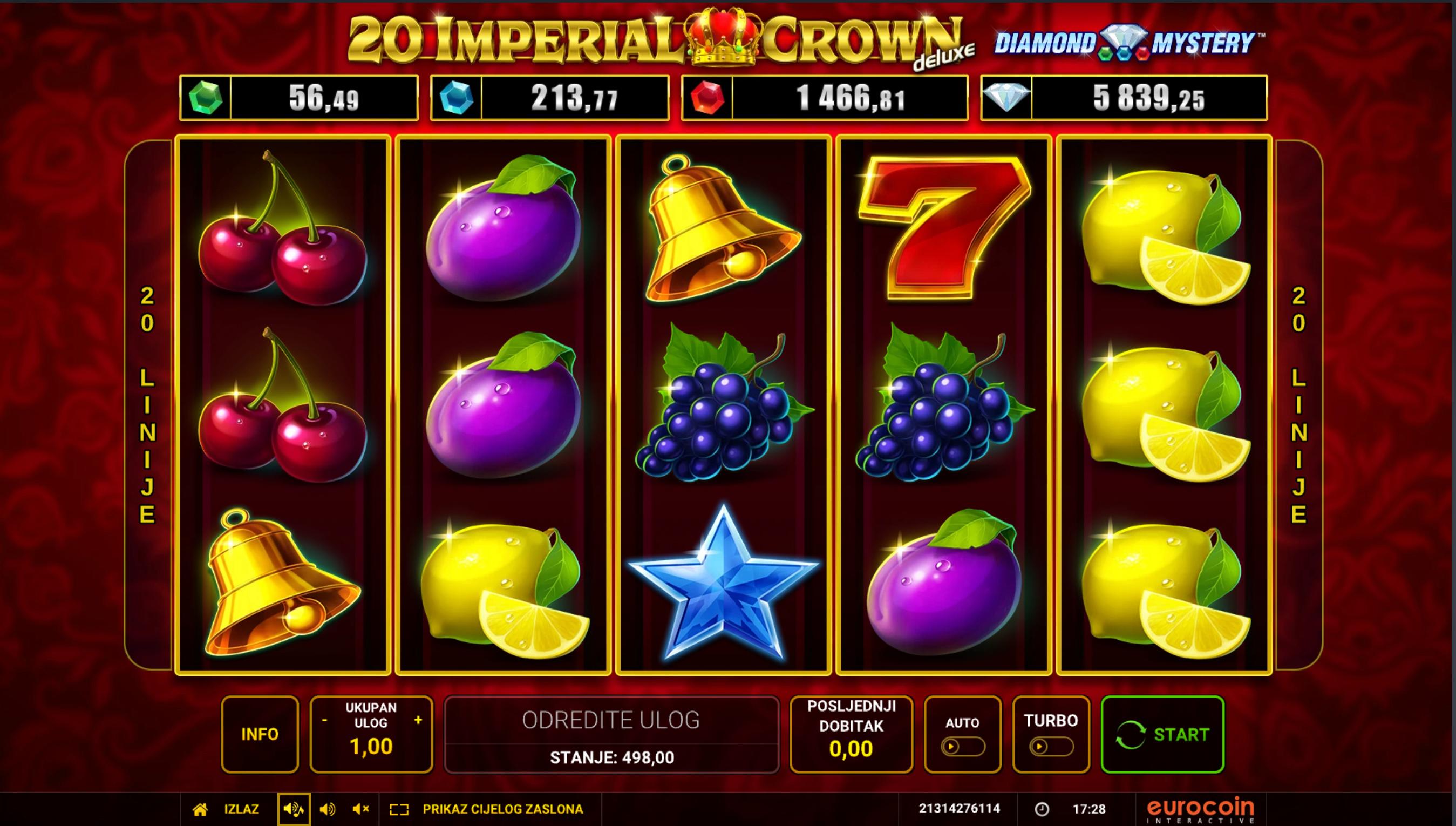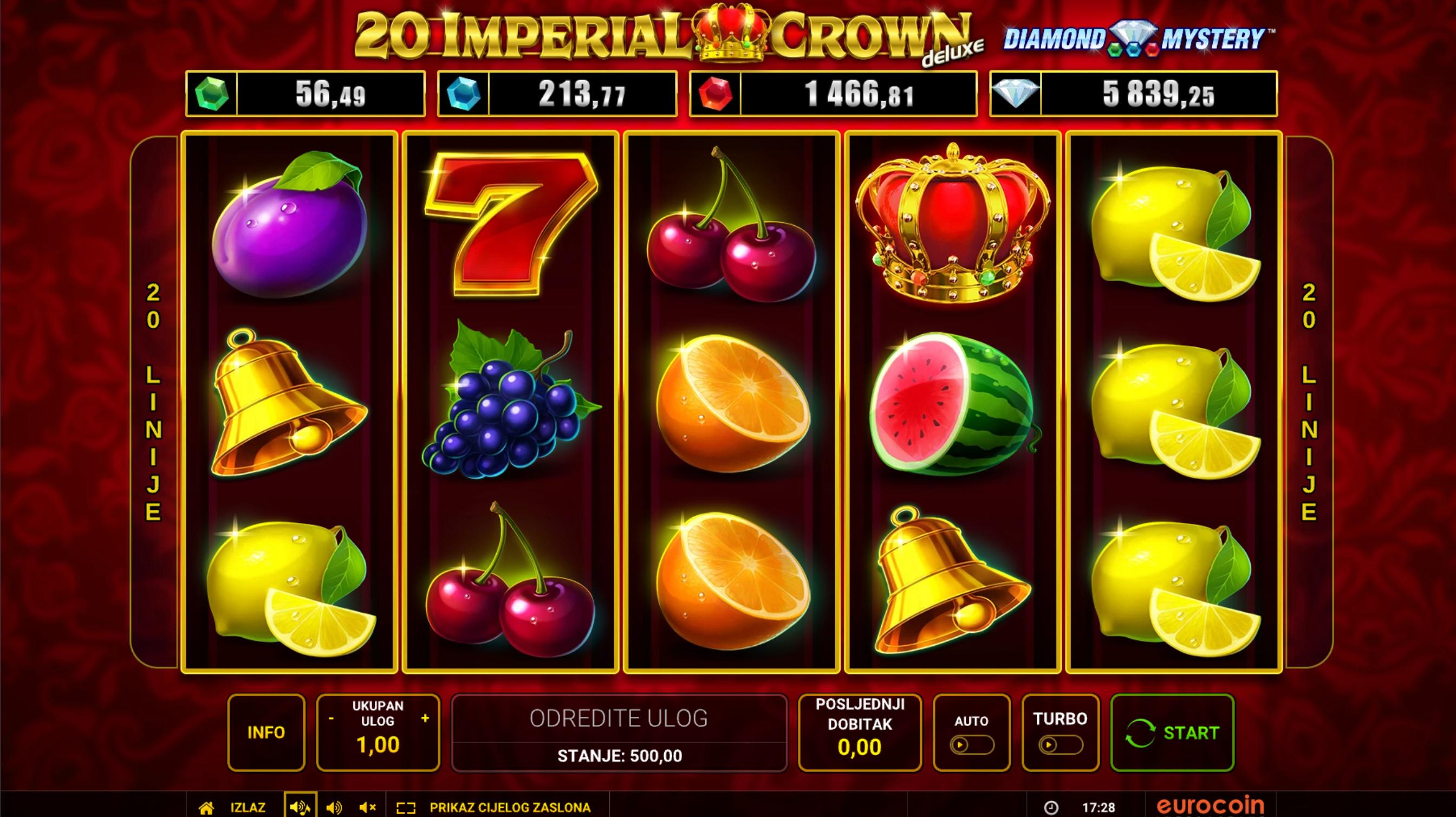 20 Imperial Crown je slot igra koja pripada seriji classic-voćnih igara s modernim dodatkom – četiri razine jackpota. Igra ima tipičan raspored s 5 koluta, 3 reda i 20 isplatnih linija. Tema donosi simbole kruna, voća, zvona i klasike, uz elegantan dizajn i funkciju jackpotizacije.