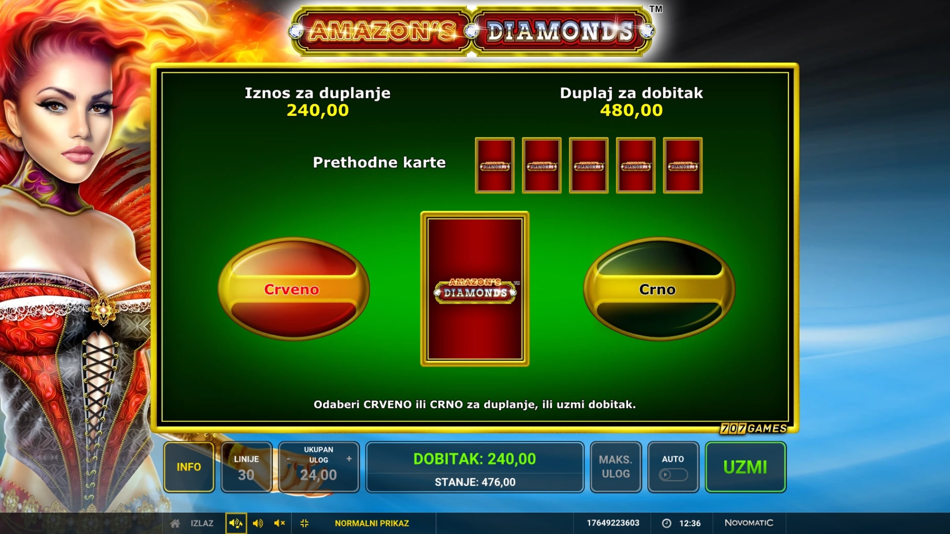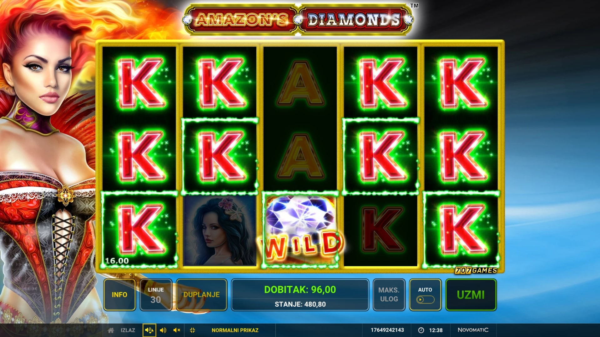 Amazon's Diamonds slot je igra mističnog ugođaja koja vodi igrača u južnoameričku divljinu u potrazi za vrhunskim dobicima. Igra je inspirirana legendarnim Amazonkama te upravo simboli s njihovim ilustracijama pružaju najveće dobitke, dok simboli Wilda i Scattera mijenjaju druge simbole, odnosne aktiviraju besplatne vrtnje. U slučaju dobitka, igrač ga može pokušati 'poduplati' pogađanjem boje karte okrenute licem prema dolje. Zaigraj Amazon's Diamonds te osvoji legendarne nagrade!