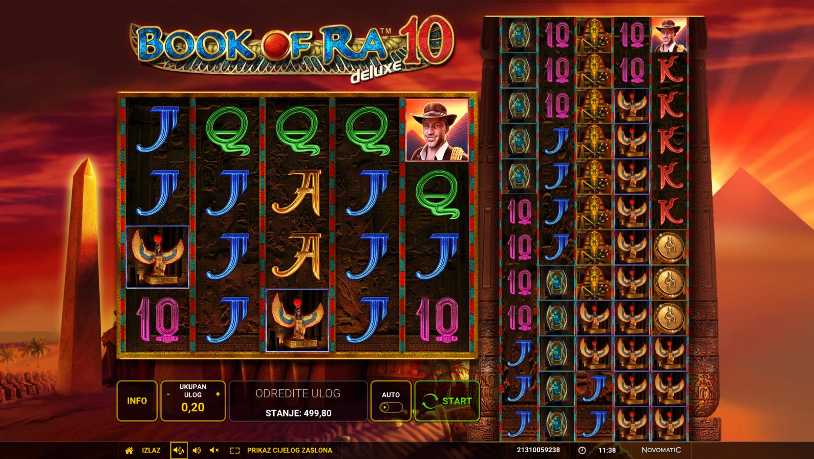 Book of Ra Deluxe 10 je nova verzija popularne serije koju je razvio Greentube. Tema igre vodi te kroz drevni Egipat, s hrabrim istraživačem koji traži legendarni „Book of Ra“. Igra se odvija na širem polju koluta, donosi mnoštvo isplatnih putova i značajki poput proširujućih simbola i bonusa besplatnih vrtnji.