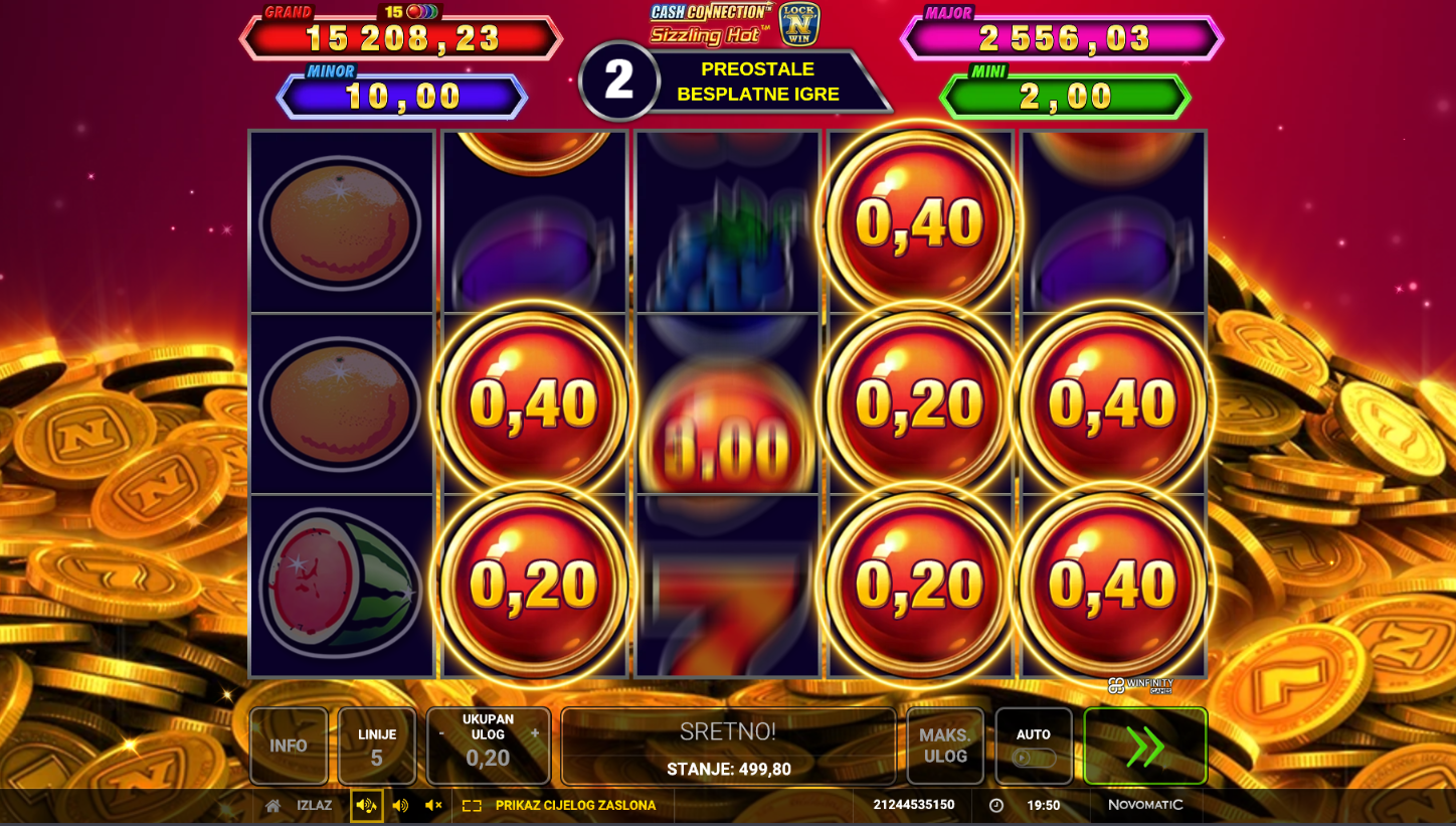 1. Ima li Cash Connection - Sizzling Hot besplatne vrtnje?