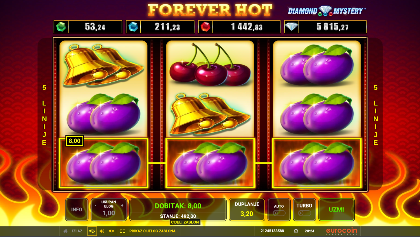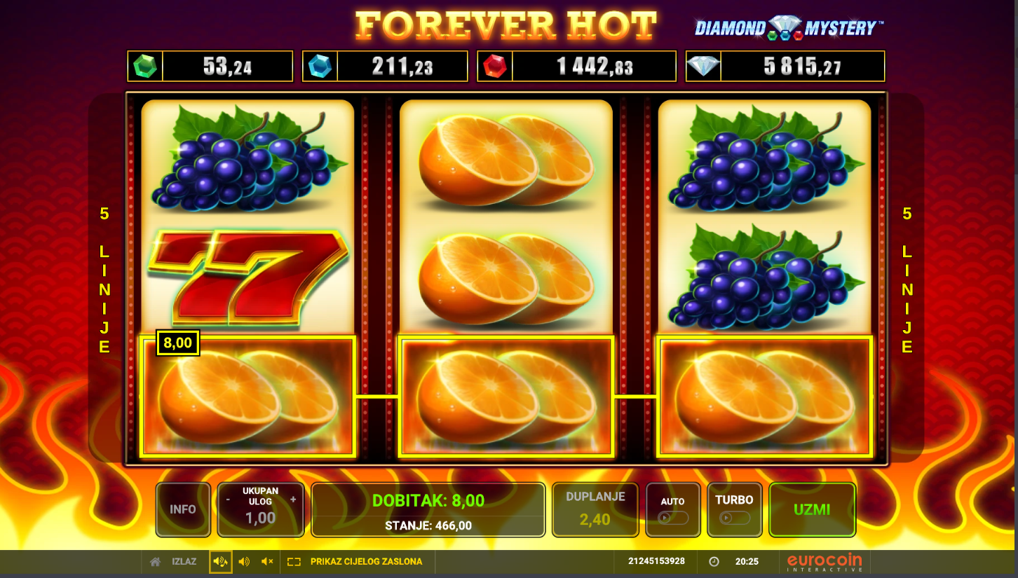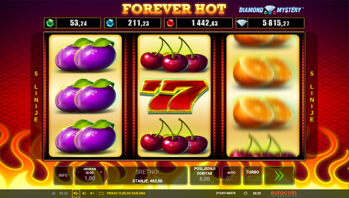 S RTP-om od oko 95% i srednjom volatilnošću, Forever Hot nudi ravnotežu između čestih, manjih i povremenih većih dobitaka. Savršena igra za opuštanje, brze runde i pravi retro užitak uz vrući ritam klasičnih simbola!