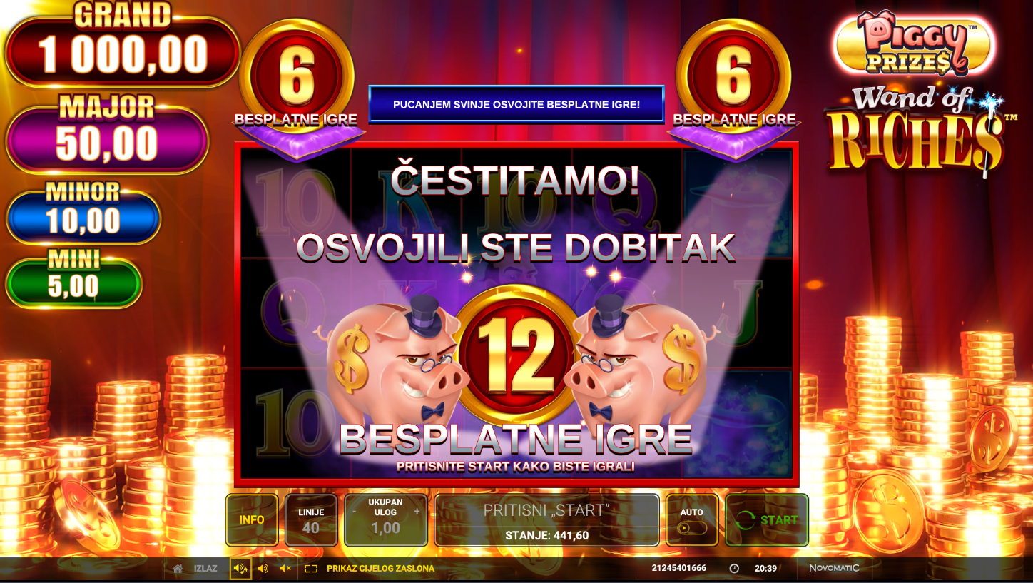 1. Ima li Piggy Prizes Wand of Riches Buy Bonus besplatne vrtnje?